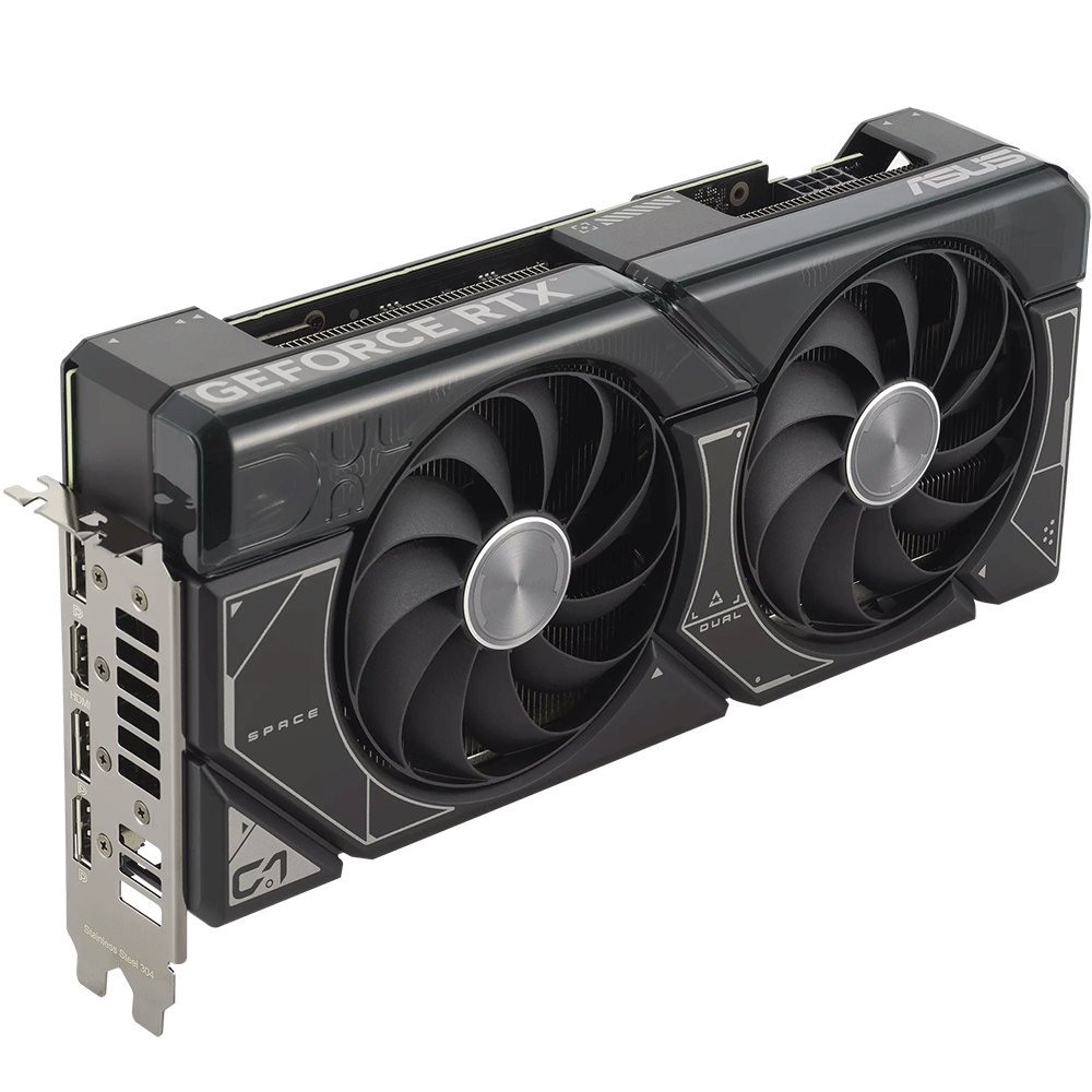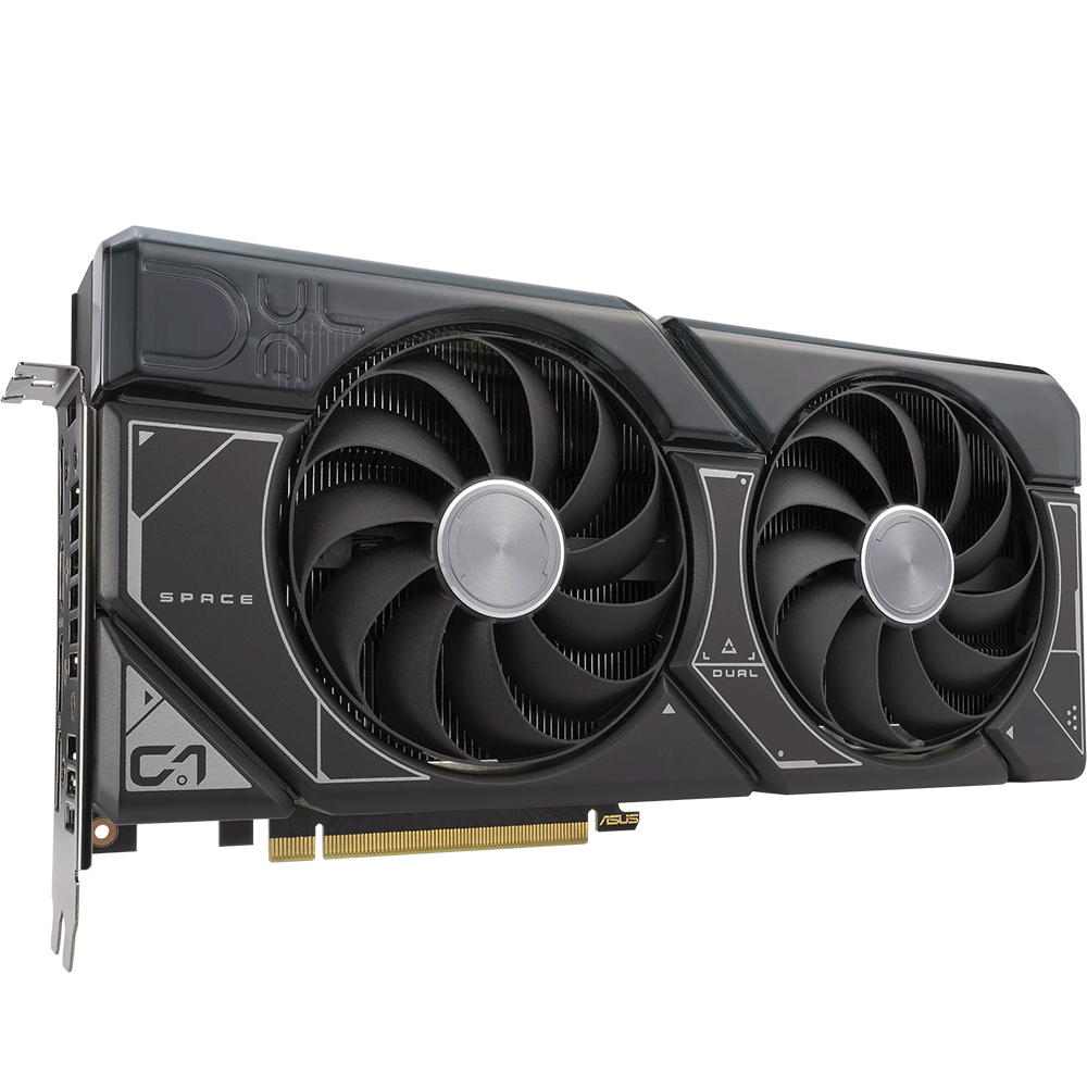 - كرت الشاشة ASUS Dual GeForce RTX 4070 OC Edition بذاكرة GDDR6X بسعة 12 جيجابايت مع مروحتين قويتين بتقنية Axial وتصميم فتحة 2.56 للتوافق الواسع
