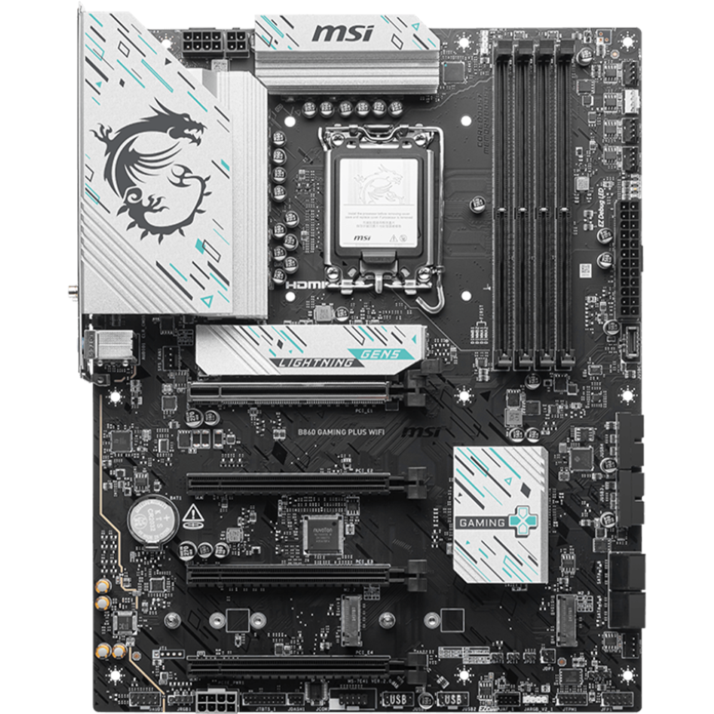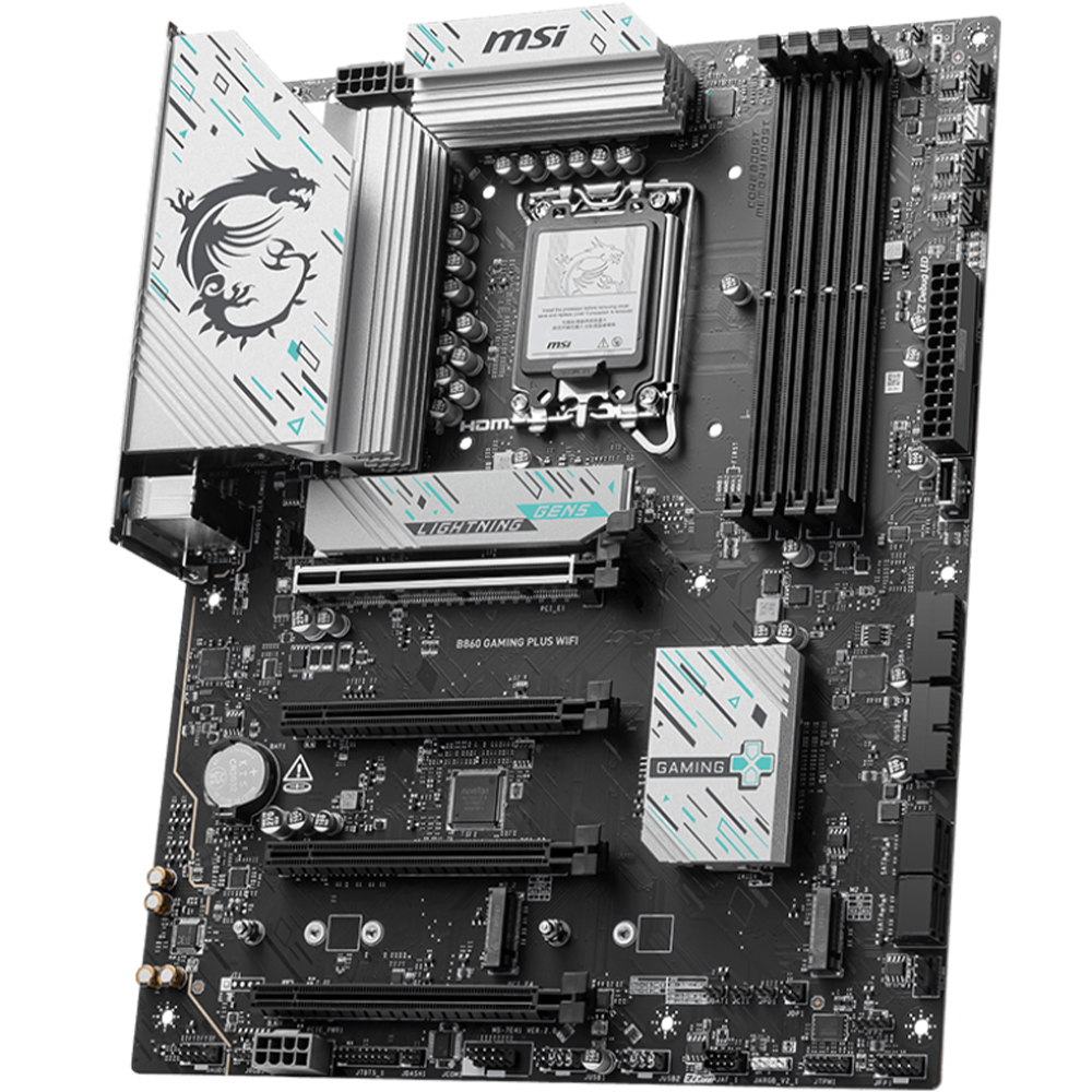 - تم تصميم اللوحة الأم B860 GAMING PLUS WIFI لتوفر اتصالاً واسع النطاق، وأدوات متعددة الاستخدامات، وحلاً متميزاً لشبكة Wi-Fi للاعبين الباحثين عن تجربة شاملة. يتميز بمنفذ Thunderbolt 4، وشبكة Wi-Fi 7 عالية السرعة، وشبكة 5G LAN، وحل PCIe 5.0، وطاقة PCIe إضافية، وميزات EZ DIY الحصرية، وهو جاهز للعب على مدار الساعة طوال أيام الأسبوع، وهو مُحسّن لمعالجات Intel Core Ultra.