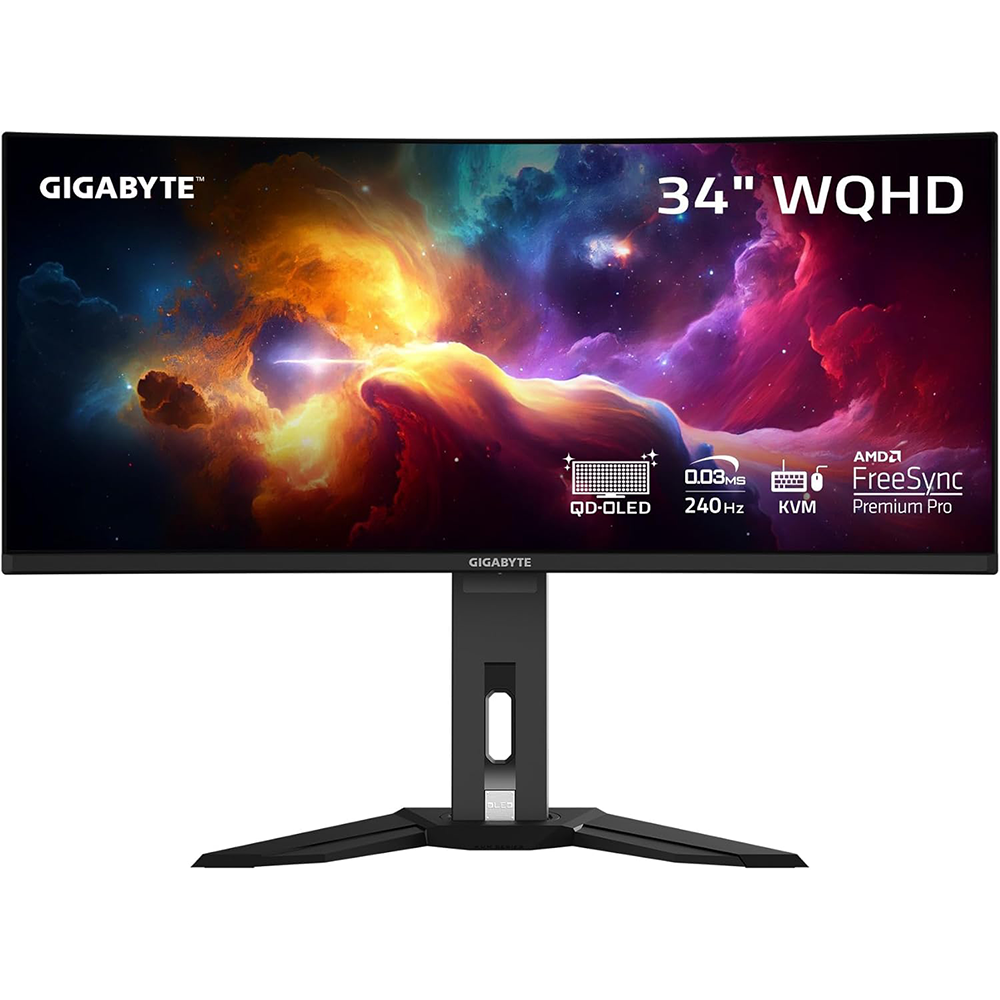 ارفع مستوى الألعاب مع شاشة GIGABYTE 34" WQHD QD-OLED بتردد 240Hz وزمن استجابة 0.03 مللي ثانية لتجربة لعب غامرة وسريعة بلا منافس.
