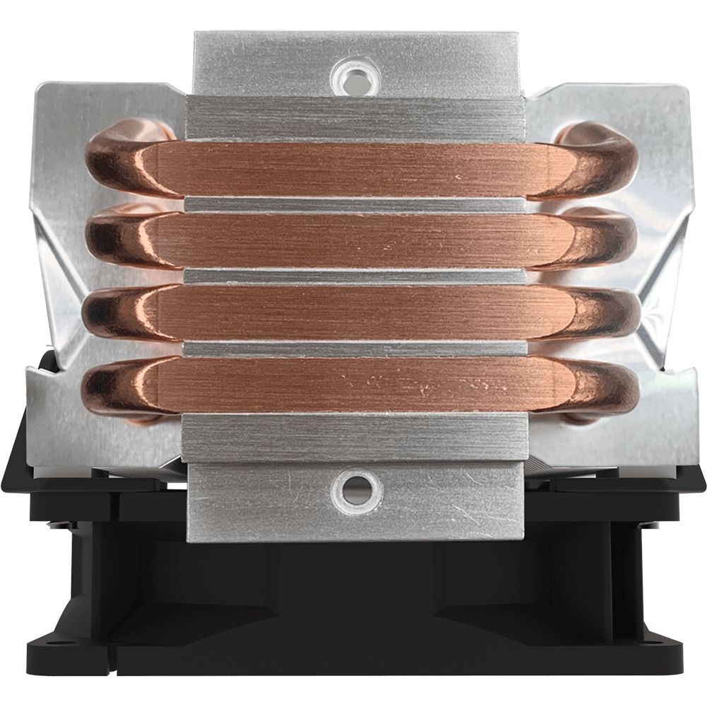 - مادة المشتت الحراري : 4 أنابيب حرارية، اتصال مباشر، زعانف من الألومنيوم