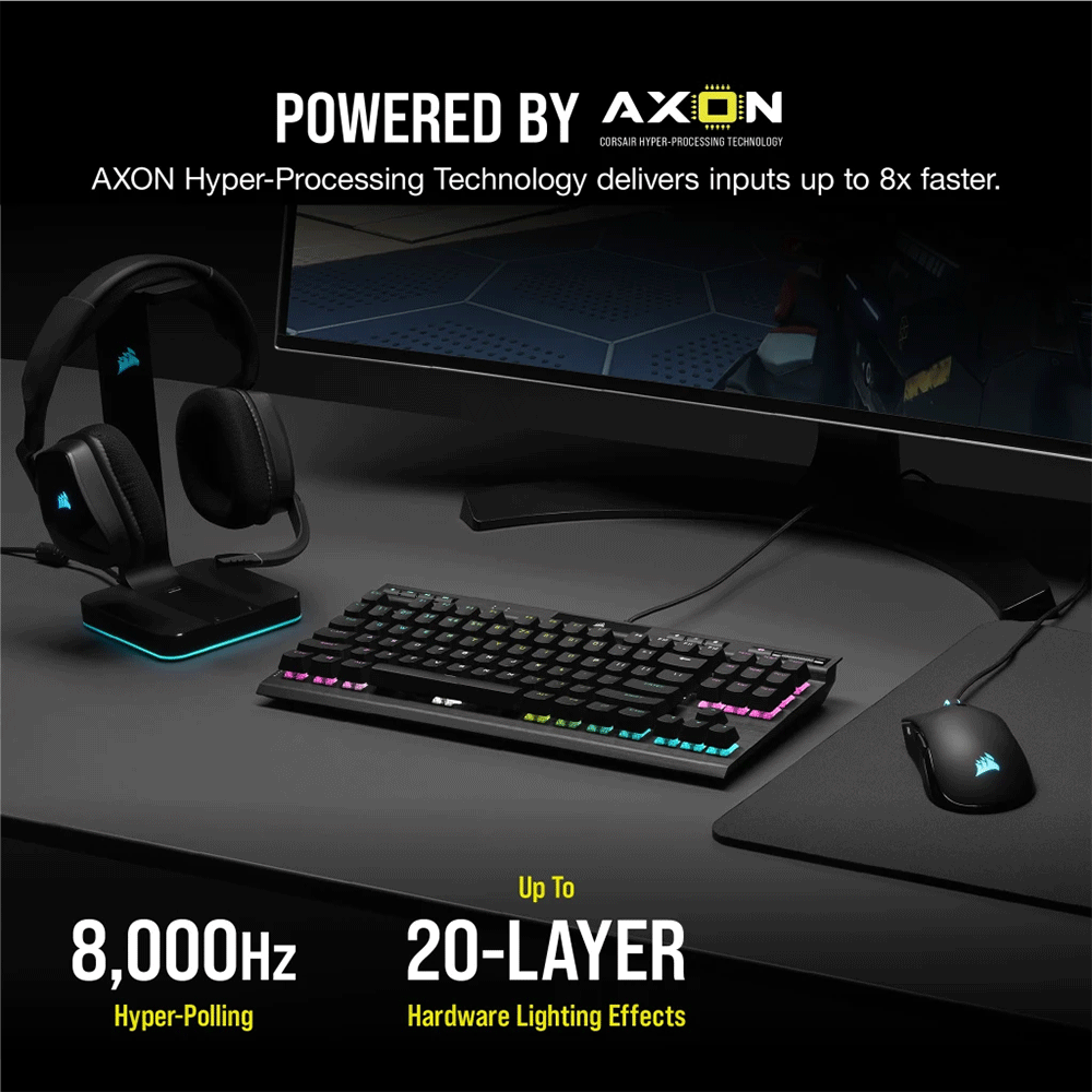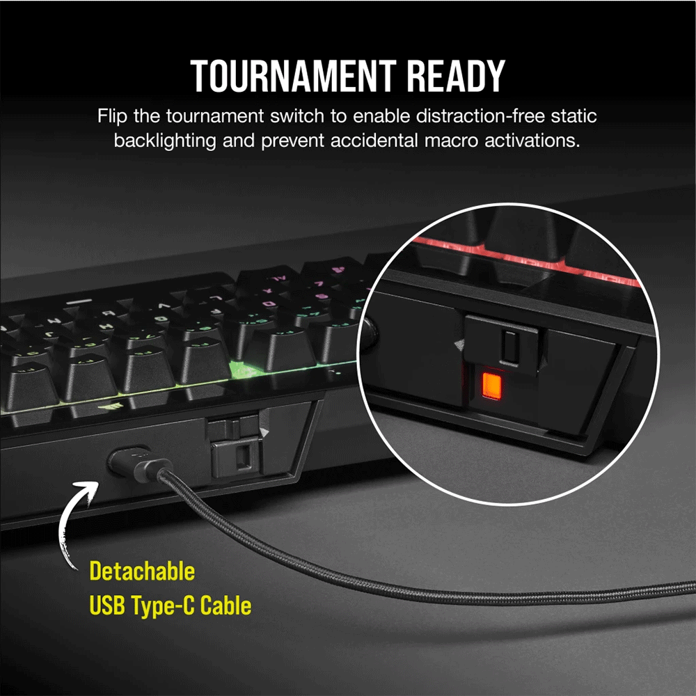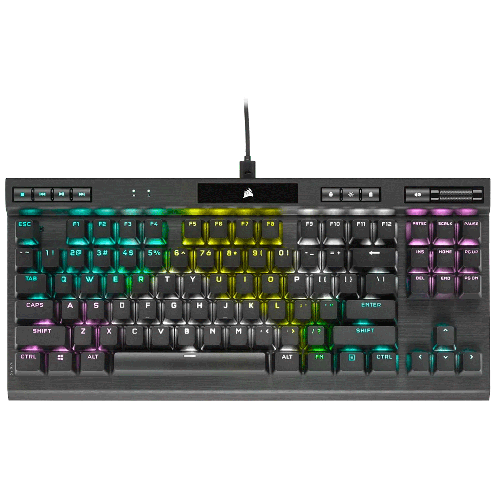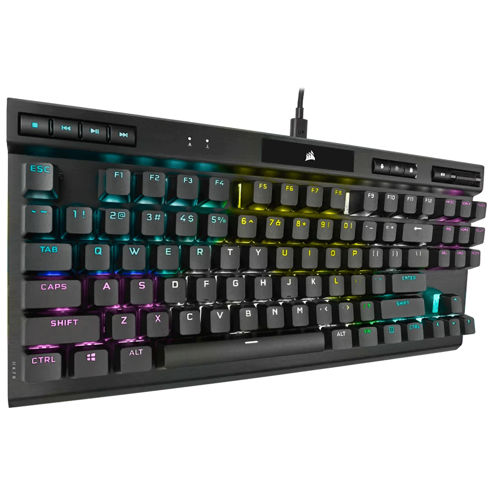 - اصطحب لوحة مفاتيح الألعاب الميكانيكية CORSAIR K70 RGB TKL إلى منافسيك, القادمة من خلال عامل شكل مدمج بدون لوحة الارقام ، وأداء احترافي مدعوم بتقنية المعالجة الفائقة CORSAIR AXON ، وإطار من الألومنيوم المتين.