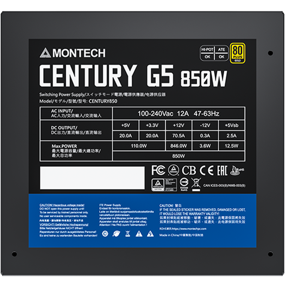 - تتوافق سلسلة CENTURY G5 مع مواصفات Intel ATX 3.0 ويمكنها تحمل ضعف استهلاك الطاقة الفوري للنظام بأكمله. يمكن لموصل 12VHPWR تحمل 3 أضعاف استهلاك الطاقة الفوري لوحدة معالجة الرسومات، مما يوفر مصدر طاقة مستمر وآمن لنظام الكمبيوتر الخاص بك.