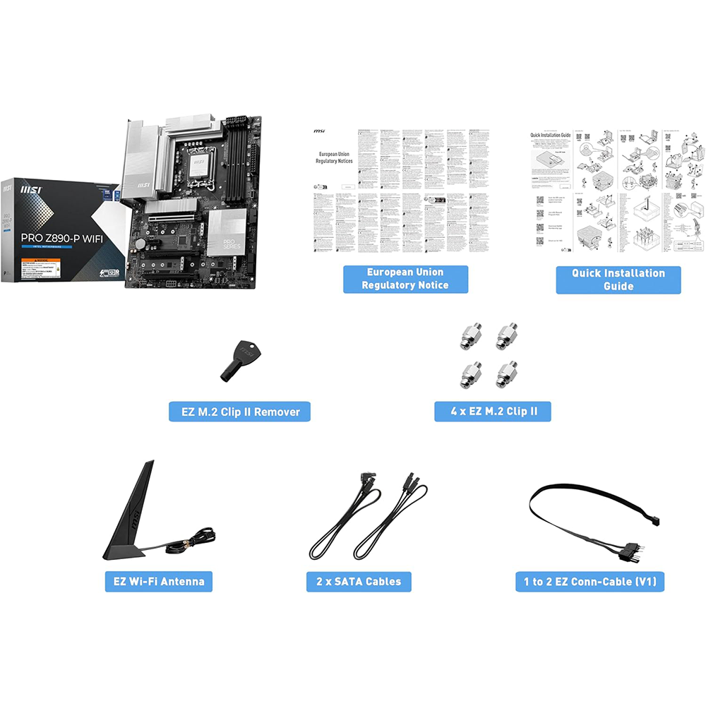 - تقدم PRO Z890-P WIFI تصميمًا بسيطًا مع مخطط ألوان فضي متناغم يتناسب تمامًا مع أجهزة الكمبيوتر الشخصية البيضاء والسوداء. تم تصميمها بالعديد من الميزات الحصرية من MSI، وهي Wi-Fi 7 حقيقية مع هوائي EZ، وشبكة LAN 5G، وThunderbolt 4، وPCIe 5.0 M.2 مع EZ M.2 Shield Frozr II، وطاقة PCIe إضافية، وجاهزة لمعالجات Intel® Core™ Ultra.