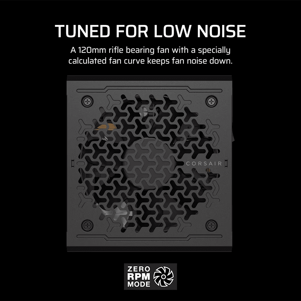- مروحة 120 مم مزودة بمحمل بندقية مع منحنى مروحة محسوب خصيصًا لتقليل ضوضاء المروحة، حتى عند التشغيل بأقصى حمولة.