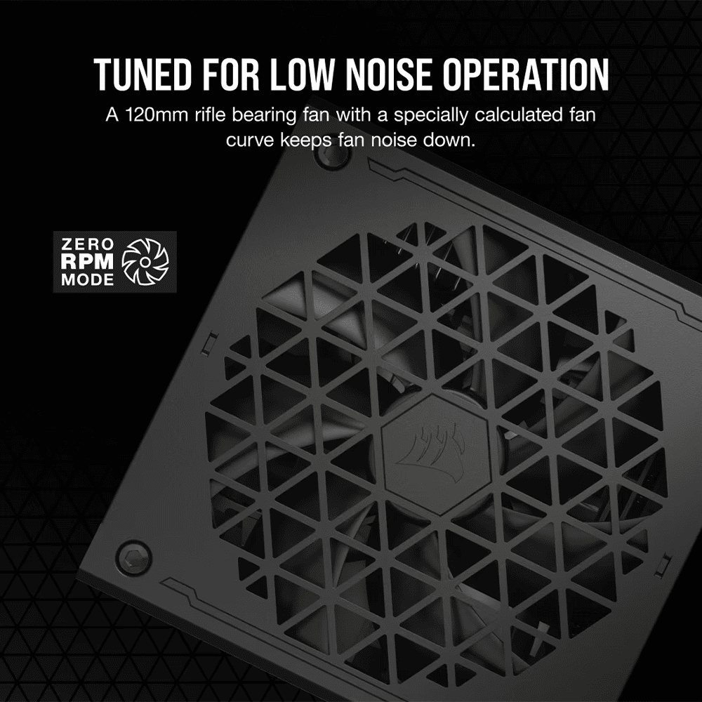 - مروحة 120 مم مزودة بمحمل بندقية مع منحنى مروحة محسوب خصيصًا لتقليل ضوضاء المروحة، حتى عند التشغيل بأقصى حمولة.