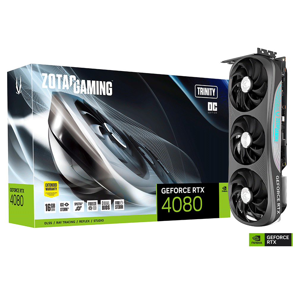 - تستفيد ZOTAC GAMING GeForce RTX 4080 16GB Trinity OC من تصميم مستوحى من الديناميكيات الهوائية الجديدة كليًا ، وهي تستخدم وحدة معالجة الرسومات الأكثر تقدمًا في العالم للألعاب والمدعومة ببنية NVIDIA Ada Lovelace و DLSS 3. باستخدام تقنيات التبريد المتطورة المستمدة من الطراز الرائد ، Trinity تحزم OC لكمة لتوفر للاعبين لعبة FPS القوية المطلوبة في أحدث العناوين.