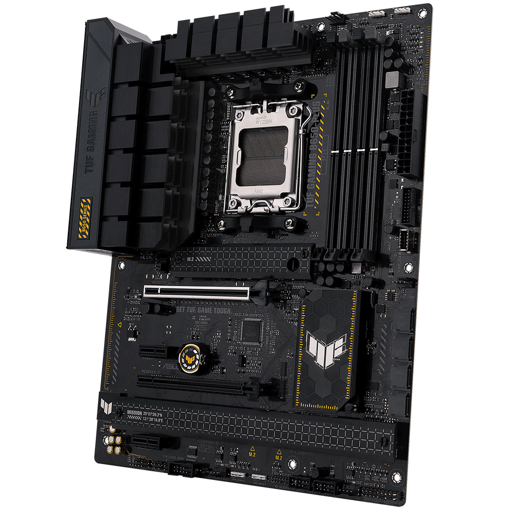 - تأخذ اللوحة الأم ASUS TUF GAMING B650-PLUS جميع العناصر الأساسية لأحدث مقبس AM5 لمعالجات سطح المكتب AMD Ryzen™ وتجمعها مع ميزات جاهزة للألعاب ومتانة مثبتة. تم تصميم هذه اللوحة الأم بمكونات عسكرية وحل طاقة مطور ونظام تبريد شامل، وتتجاوز التوقعات بأداء قوي ومستقر للألعاب الماراثونية. تخضع اللوحات الأم TUF GAMING أيضًا لاختبارات تحمل صارمة لضمان قدرتها على التعامل مع الظروف التي قد تفشل فيها اللوحات الأخرى. من الناحية الجمالية، يشتمل هذا الطراز على عناصر تصميم هندسية وعرة باللون الأسود لتعكس الموثوقية والاستقرار اللذين يميزان سلسلة TUF GAMING. توفر هذه المنصة الطاقة والاتصال التي تتطلبها تطبيقات أجهزة الكمبيوتر المتقدمة AI.