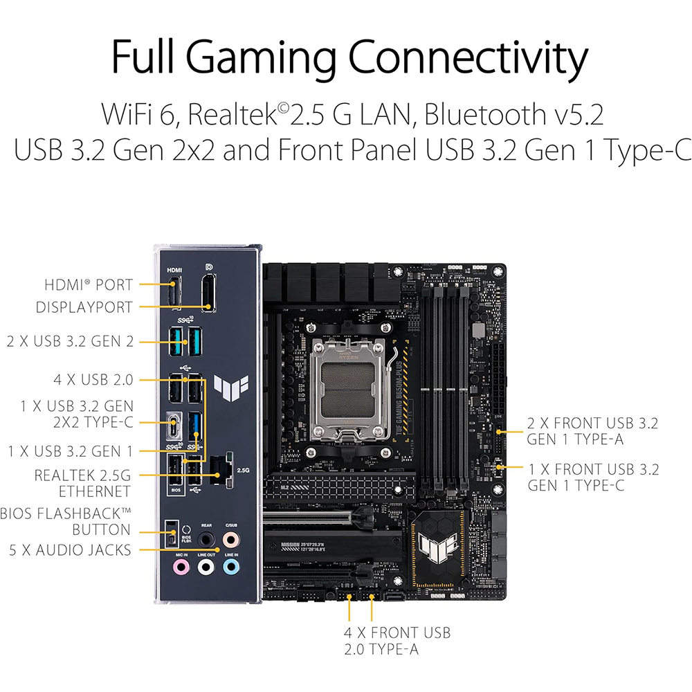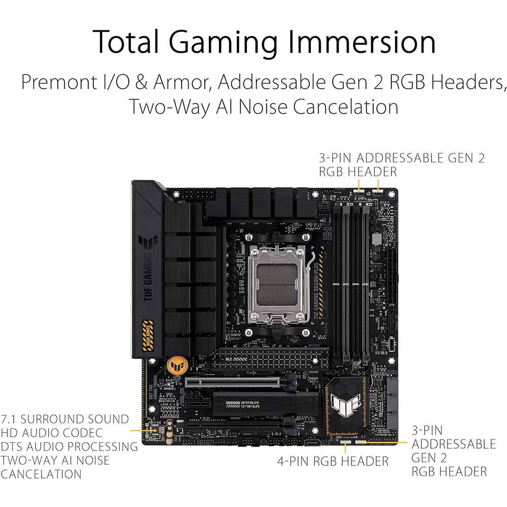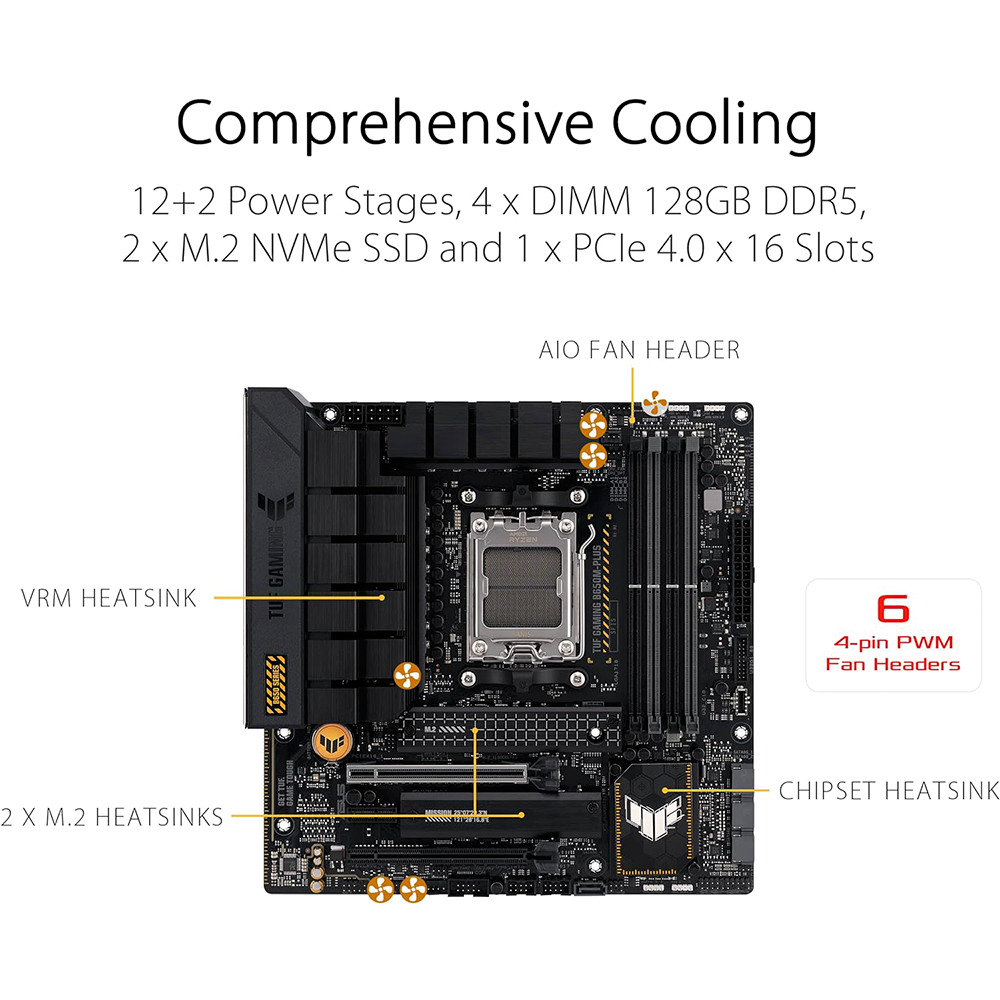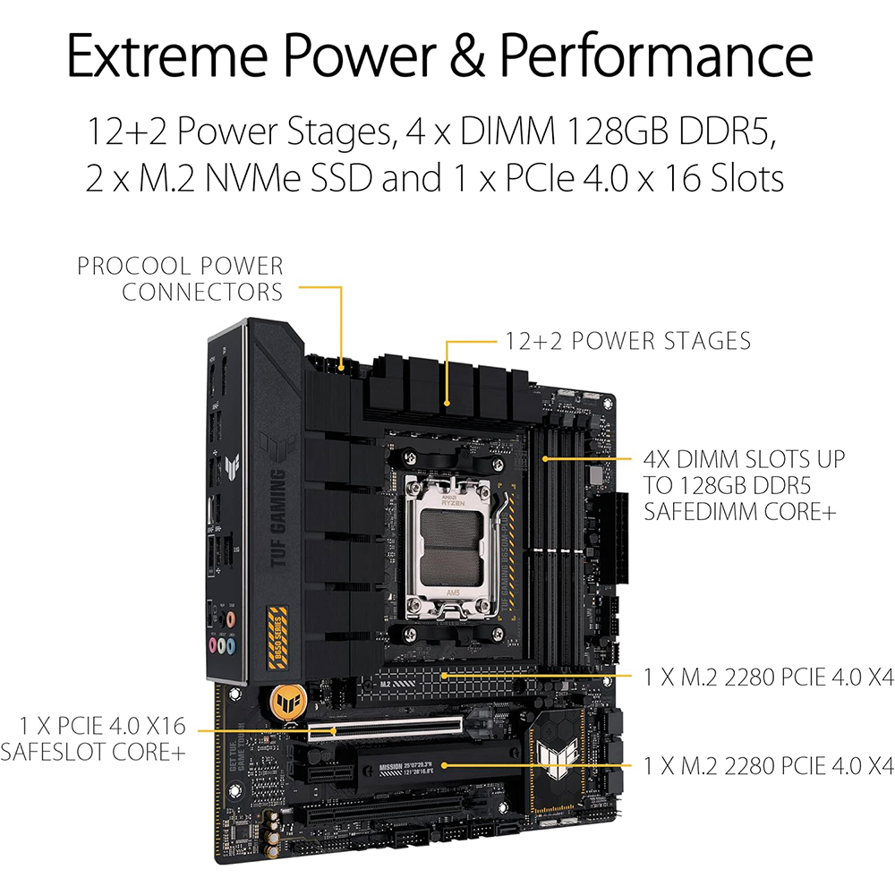 - تأخذ ASUS TUF GAMING B650-PLUS جميع العناصر الأساسية لأحدث معالجات سلسلة AMD Ryzen 7000 وتجمعها مع ميزات جاهزة للعب ومتانة مثبتة. تم تصميم هذه اللوحة الأم بمكونات من الدرجة العسكرية، وحل طاقة مطور ونظام تبريد شامل، لتتجاوز التوقعات بأداء قوي ومستقر للألعاب الماراثونية. تخضع اللوحات الأم TUF GAMING أيضًا لاختبارات التحمل الصارمة للتأكد من قدرتها على التعامل مع الظروف التي قد يفشل فيها الآخرون. من الناحية الجمالية، يشتمل هذا الطراز على عناصر تصميم هندسية وعرة باللون الأسود المصفر لتعكس الاعتمادية والاستقرار اللذين يحددان سلسلة TUF GAMING.