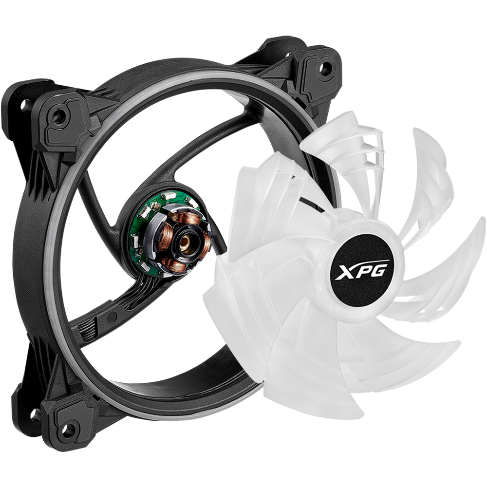 - توفر مروحة XPG HURRICANE 120 ARGB PWM أكثر من مجرد تأثيرات إضاءة رائعة بحلقة مزدوجة. تصل سرعة المروحة إلى 2000 دورة في الدقيقة، مما يولد هواءًا باردًا بضغط ثابت.