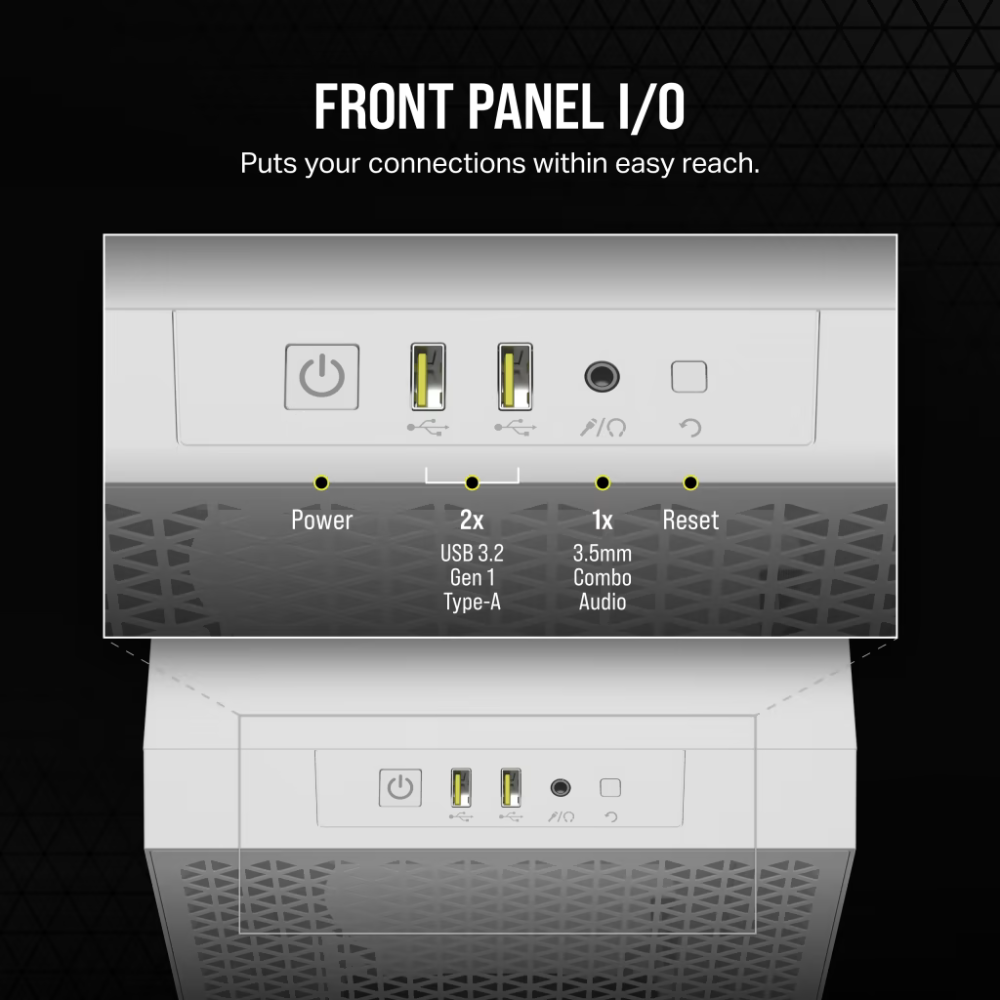 - Case Front IO : 2x USB 3.2 Gen 1 Type-A, Headphone/Mic Combo Jack