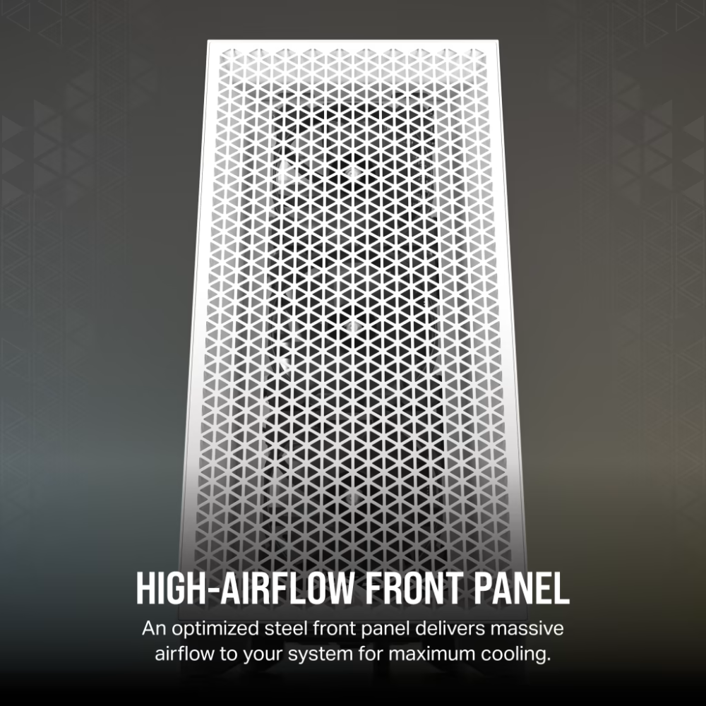 - The CORSAIR 3000D AIRFLOW WHITE presents a mid-tower ATX chassis with an efficient high-airflow design, including two pre-fitted CORSAIR SP120 ELITE fans that provide exceptional airflow.