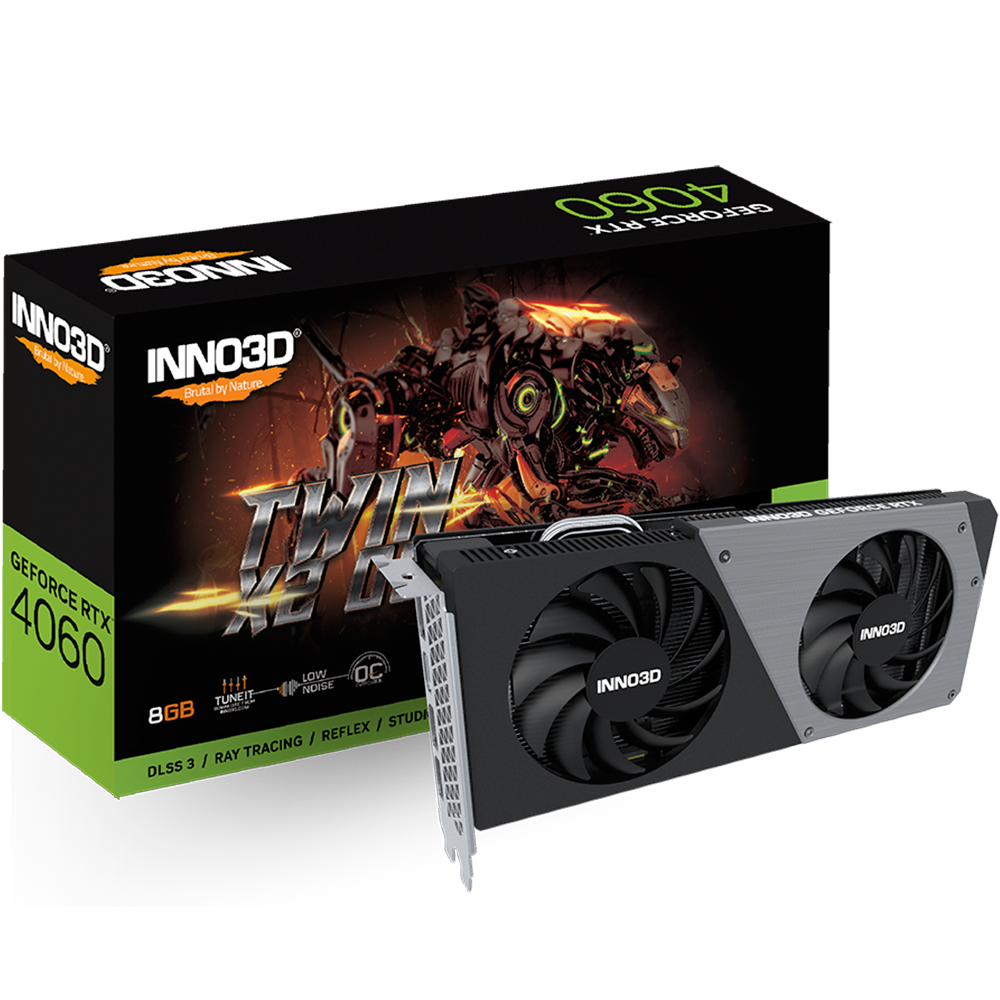 - Introducing the new INNO3D GeForce RTX 4060 TWIN X2/OC DLSS 3, the most recent NVIDIA GPU boasting its innovative Ada architecture. Tailored for compact form factor builds, the INNO3D TWIN X2/OC dual-slot design serves as the ideal choice. This cutting-edge graphics card not only offers exceptional performance but also captivates with its stylish, contemporary design.