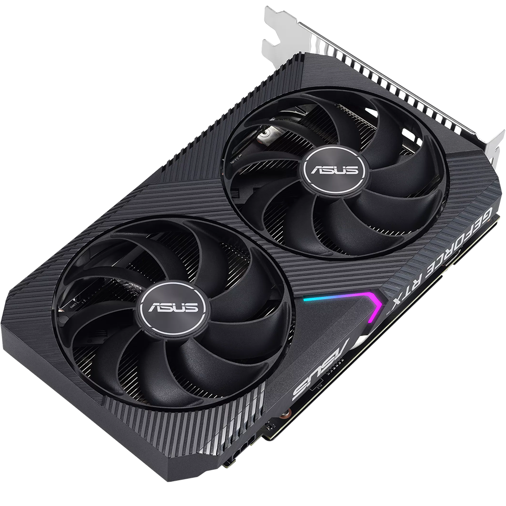 - ASUS Dual GeForce RTX 3050 V2 OC Edition 8GB GDDR6 with two powerful Axial-tech fans and a 2-slot design for broad compatibility.