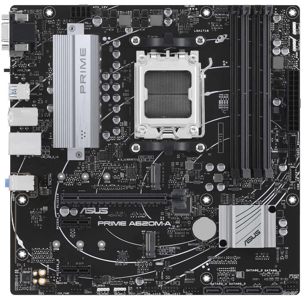 - ASUS PRIME series motherboards are expertly engineered to unleash the full potential of AMD Ryzen 7000-series processors. Boasting a robust power design, comprehensive cooling solutions and intelligent tuning options, PRIME A620M-A-CSM provides users and PC DIY builders with a range of performance optimizations via intuitive software and firmware features. This platform delivers the power and connectivity that advanced AI PC applications demand.