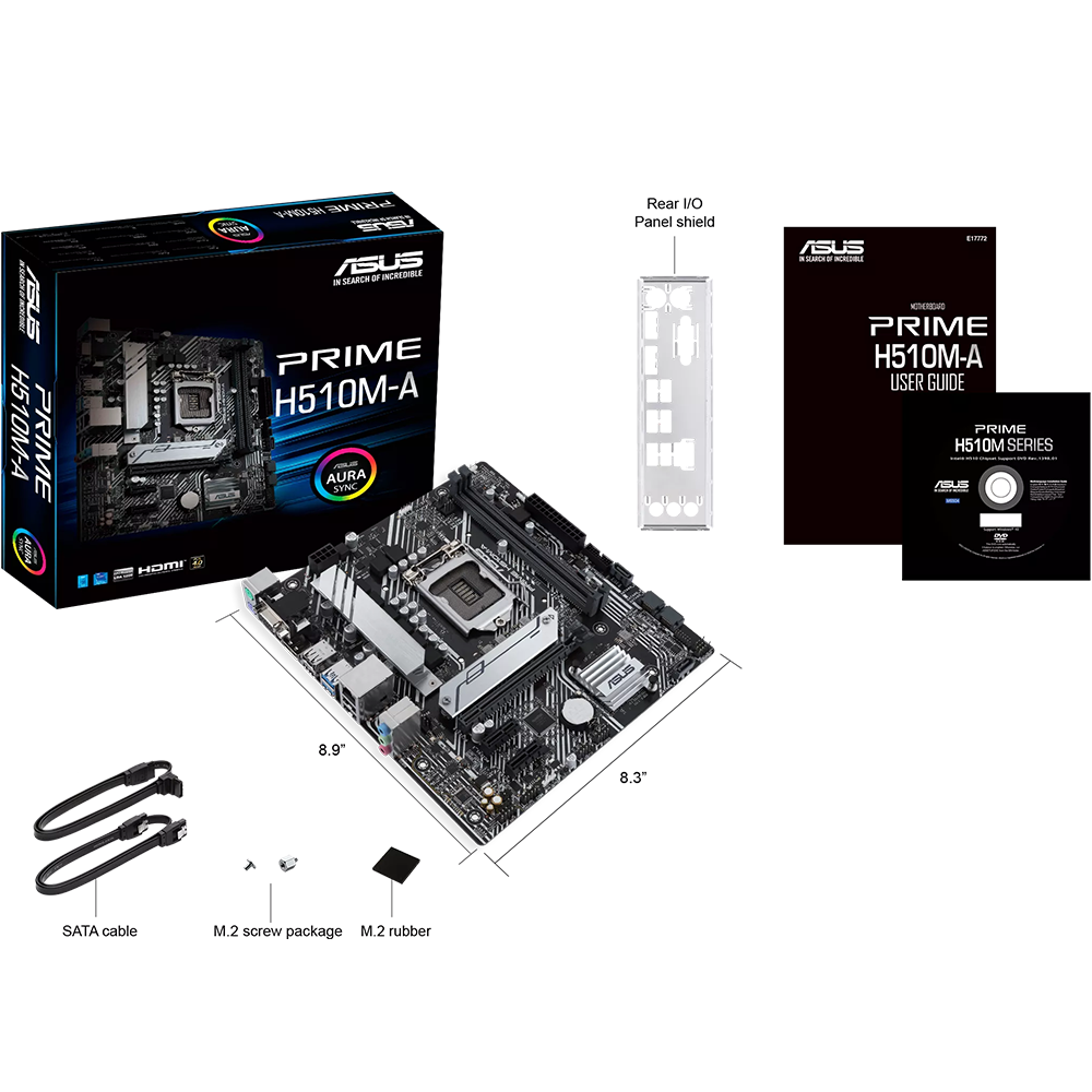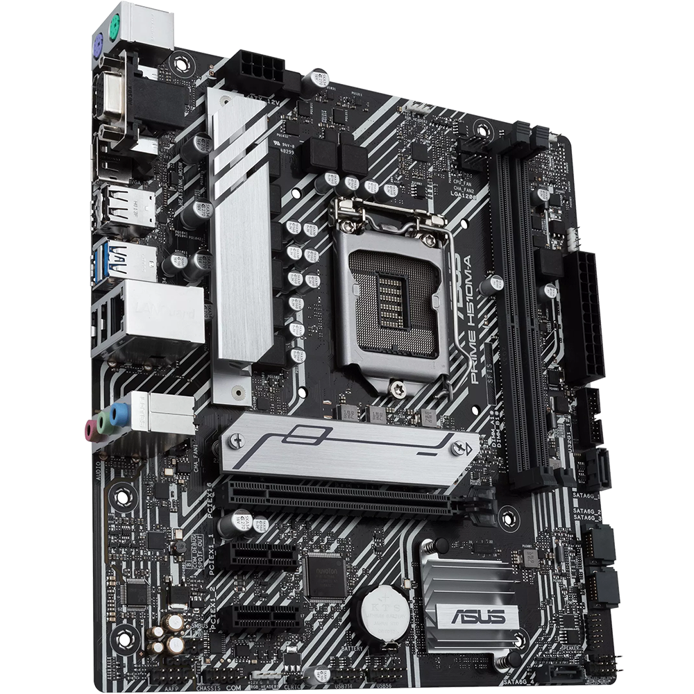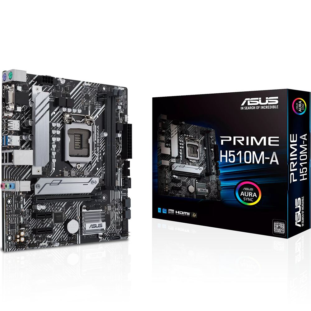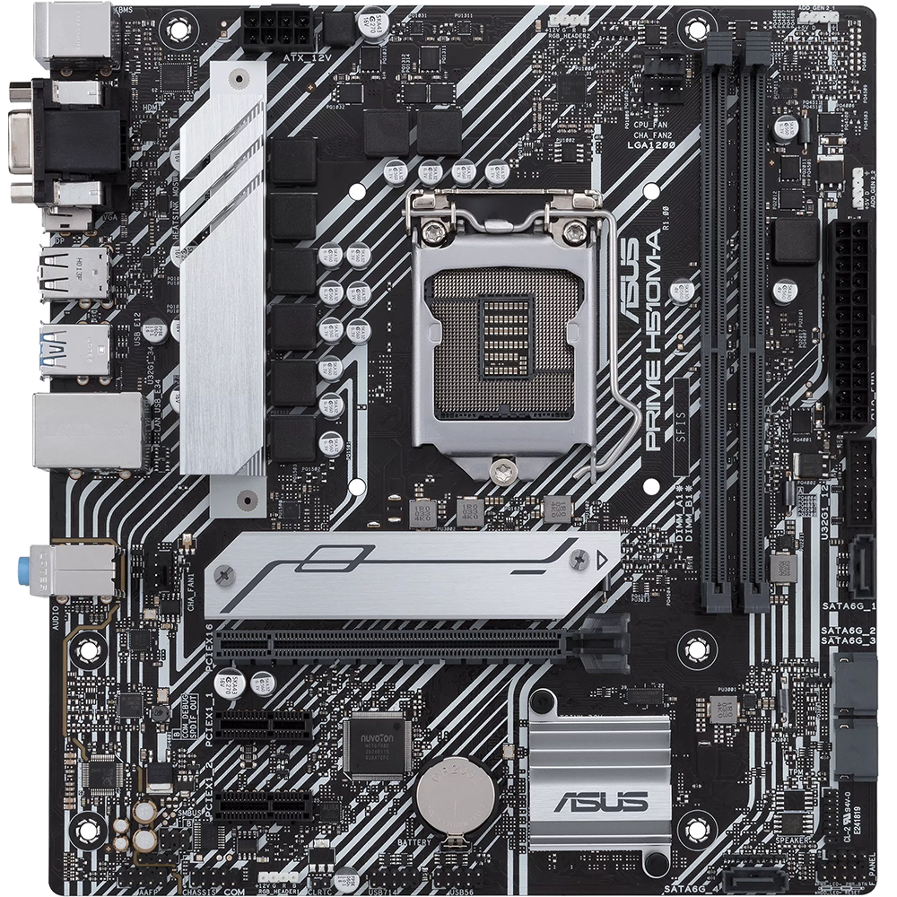 - Intel H510 LGA 1200 micro ATX motherboard with PCIe 4.0, 32Gbps M.2 slot, Intel 1 Gb Ethernet, DisplayPort, HDMI, D-Sub, USB 3.2 Gen 1 Type-A, SATA 6 Gbps, and AURA Addressable Gen 2 headers