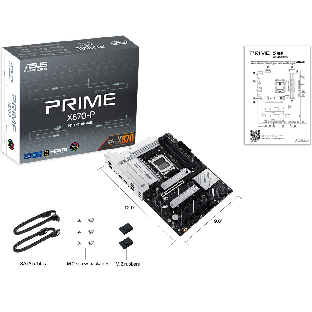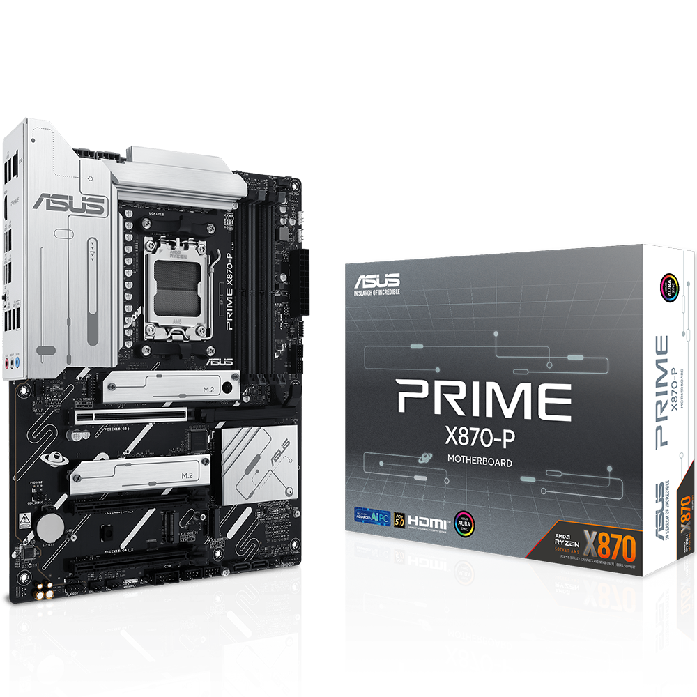 - ASUS Prime series motherboards are expertly engineered to unleash the full potential of AMD Ryzen™ 9000 series processors. Boasting a robust power design, comprehensive cooling solutions and intelligent tuning options, the PRIME X870-P motherboard provides users and PC DIY builders with a range of performance optimizations via intuitive software and firmware features. It's designed to be Advanced AI PC-ready, offering the power and connectivity needed for demanding AI applications.