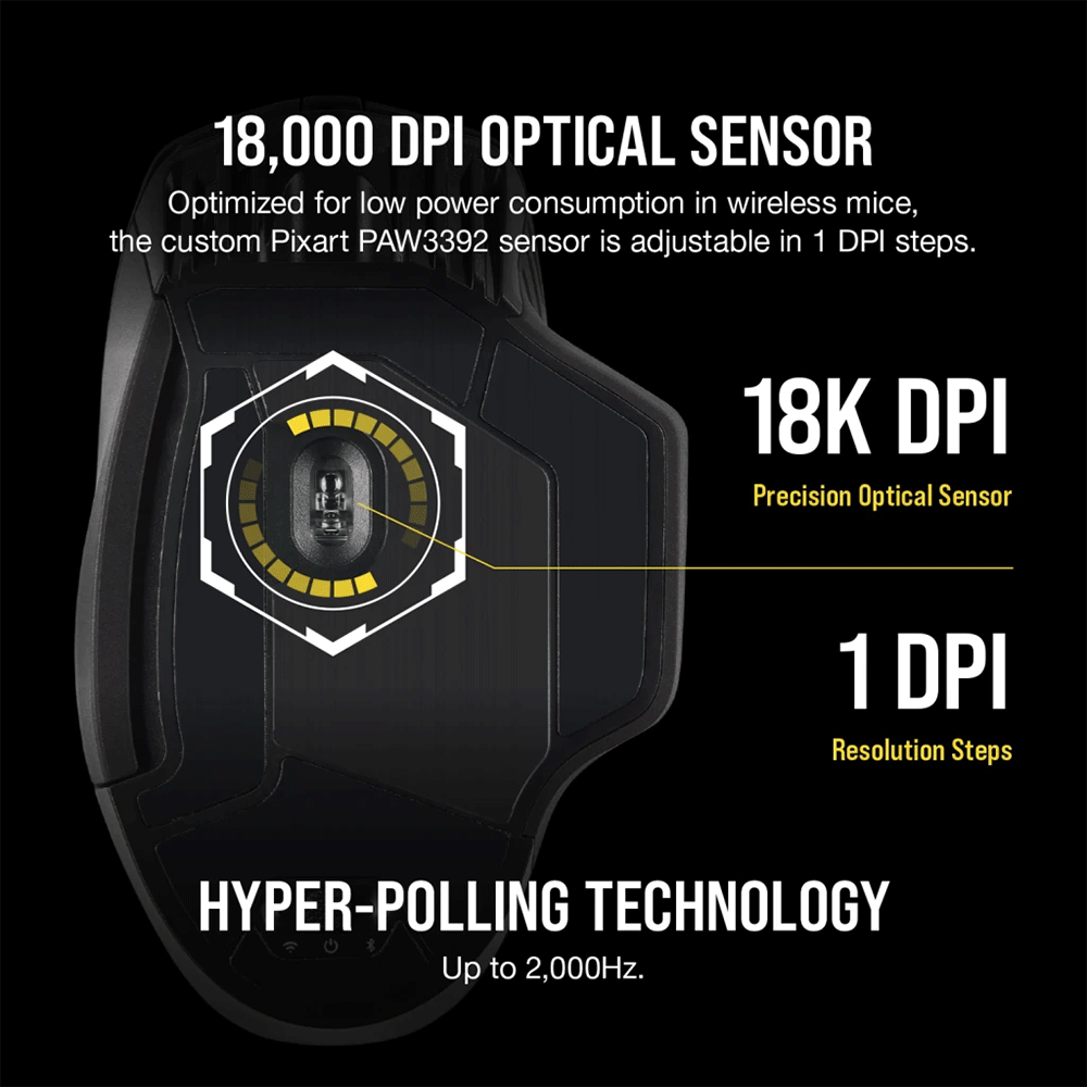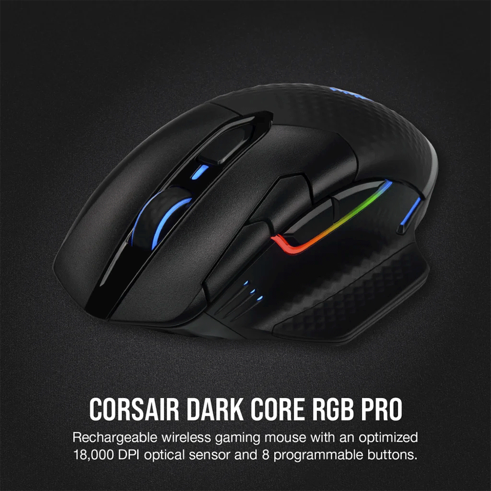 - The CORSAIR DARK CORE RGB PRO helps you win without wires, boasting sub-1ms SLIPSTREAM WIRELESS, a custom 18,000 DPI optical sensor optimized for wireless mice, and hyper-polling technology up to 2,000Hz.