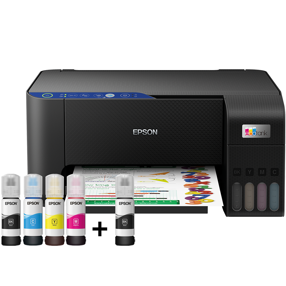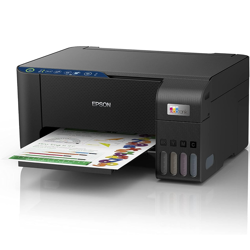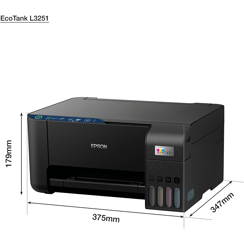 - The EcoTank L3251 multi-function printer is designed for printing with true convenience at home. One can expect a high print yield of up to 4,500 pages for black, and 7,500 pages for colour - for non-stop printing. It can even print borderless photos - up to 4R in size. The integrated ink tanks and designated nozzles ensure spill-free and error-free refilling. Wireless connectivity enables printing from smart devices. Epson’s Heat-Free Technology helps keep power consumption to a minimum, giving it the capability to print even on a UPS. The Epson Smart Panel app can be downloaded on mobile to manage the printer’s functions and setup with ease.