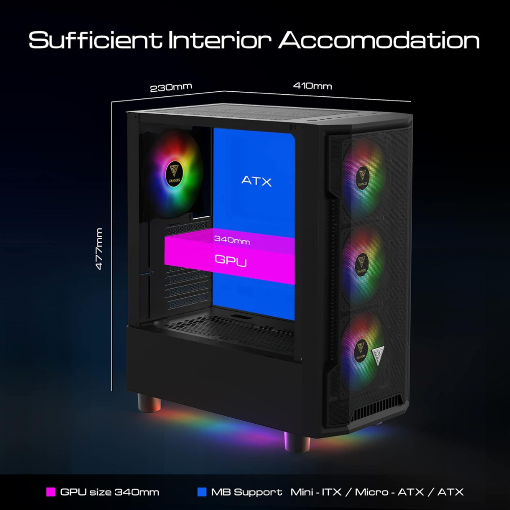 - The case is preinstalled with four high-performance hydraulic ARGB fans to create a synchronized setup while enhancing air intake and exhaust.