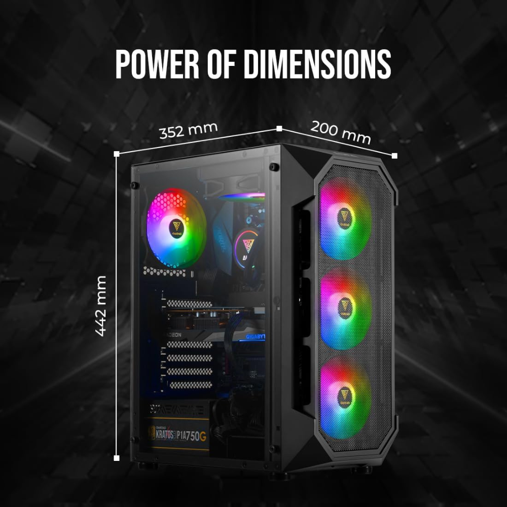 - AURA GC1 sports an airflow-focused mesh front panel with a sleek stealth black design to provide aesthetics and excellent airflow intake.