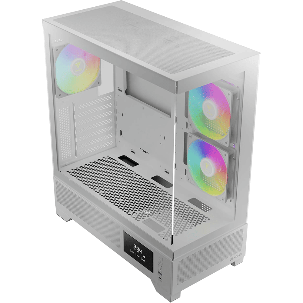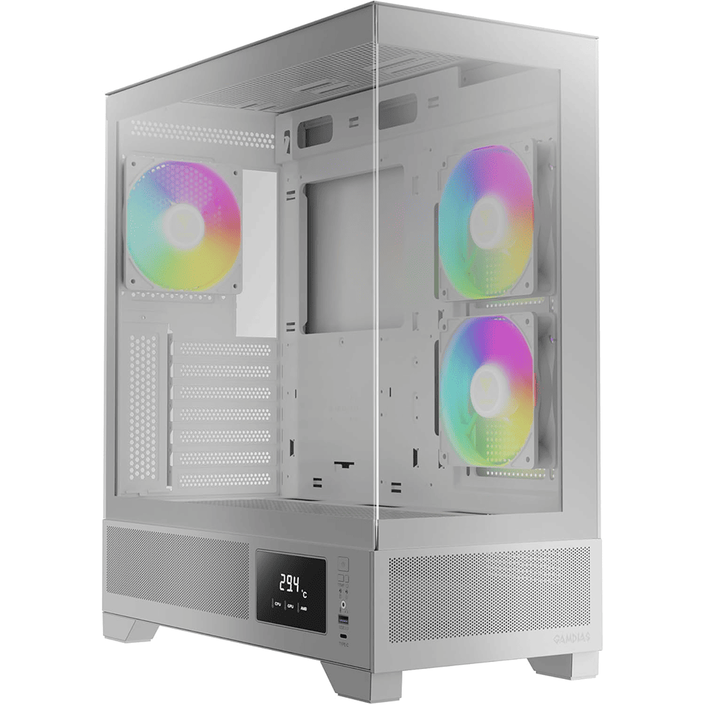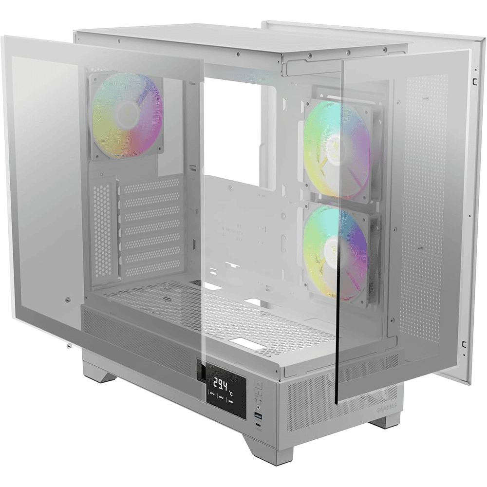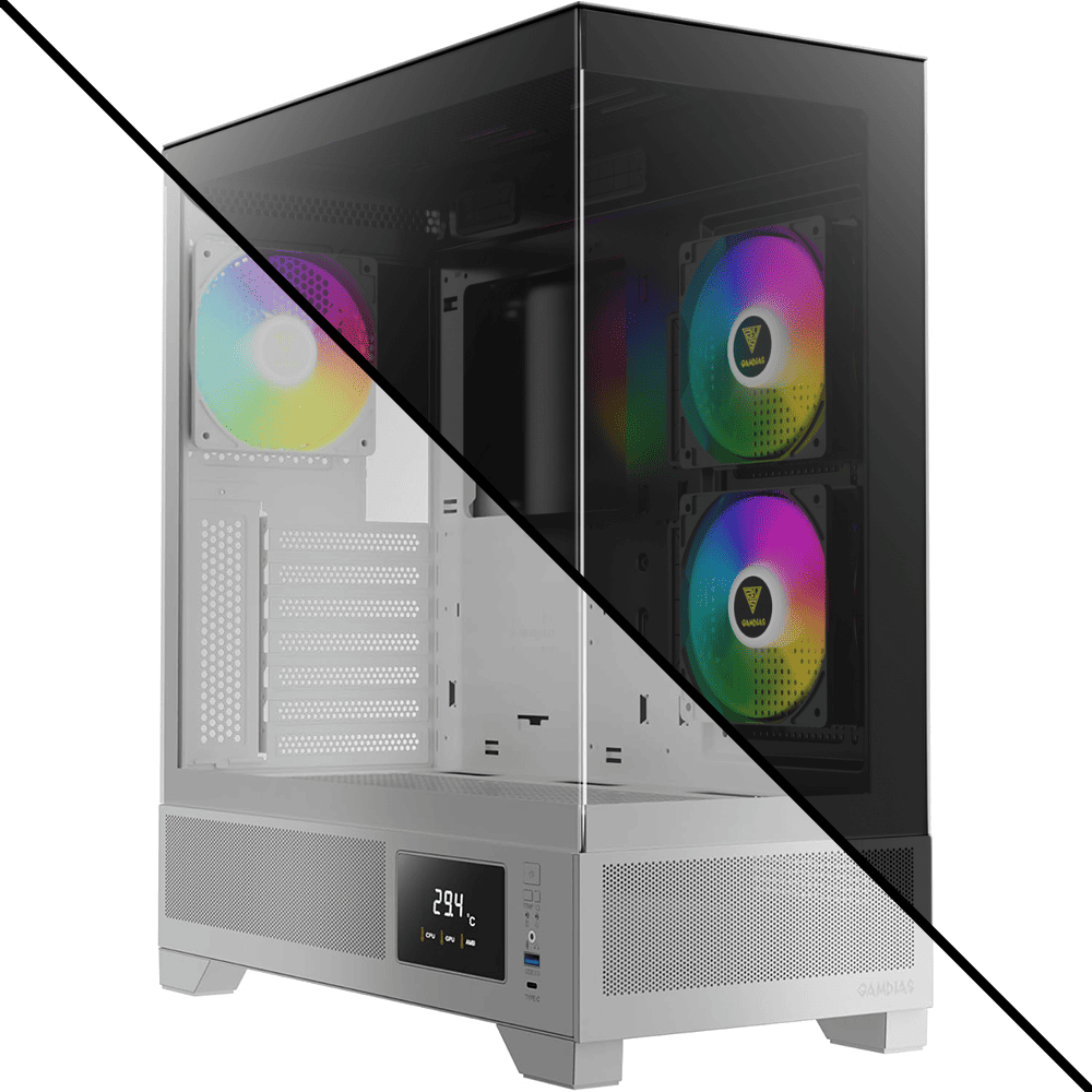 - The ATLAS M1 Series is available in black and white editions. The case features perforated air vents with three built-in ARGB PWM fans for optimal airflow and a customizable monitor for real-time system information. Enjoy the benefit of seamless tempered glass panels providing stunning visuals of your build.