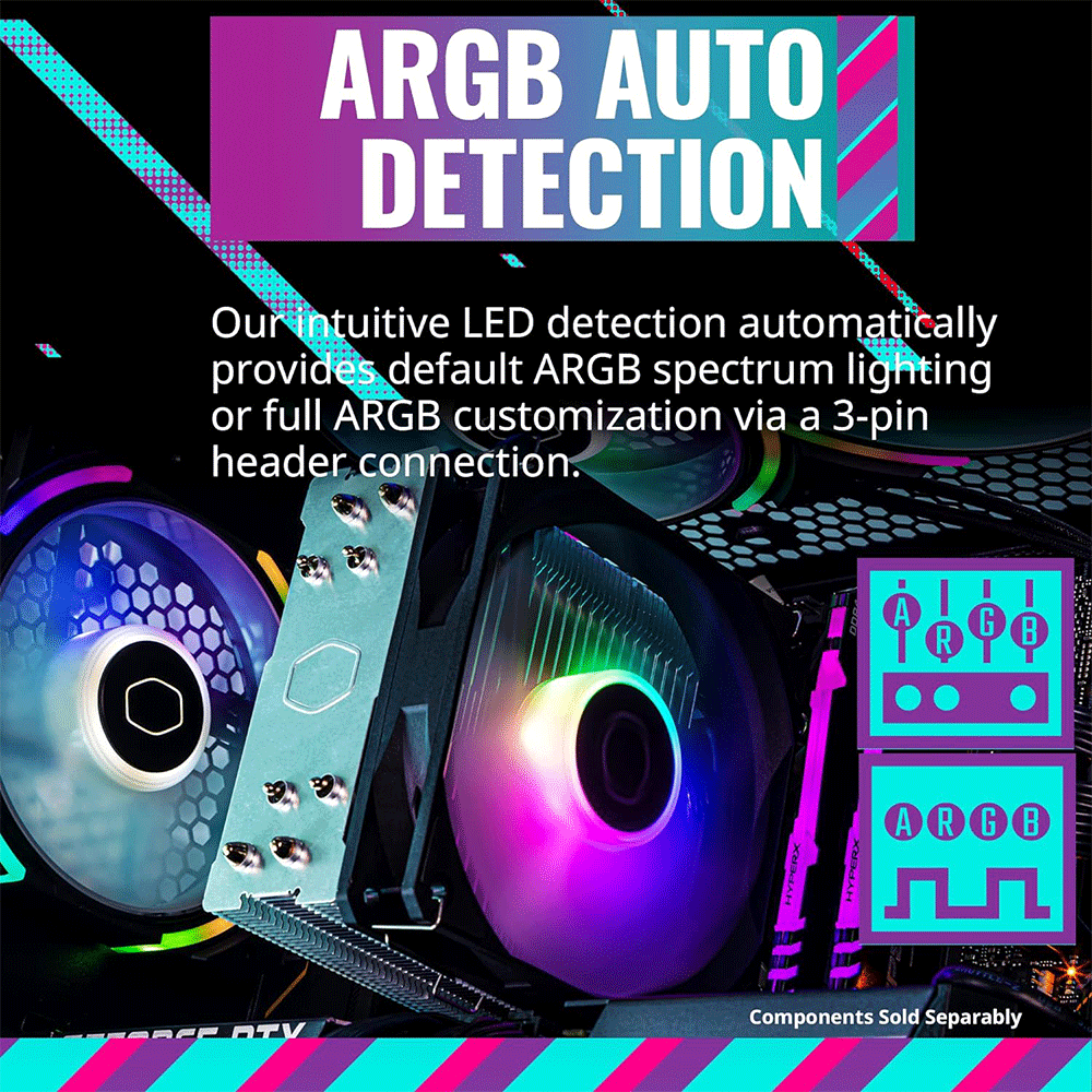 - Performance spectrum fan with ARGB compatibility with Asus Aura, ASRock RGB, Gigabyte and MSI RGB motherboards.