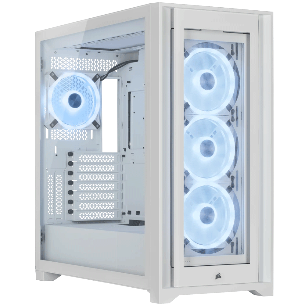 - The CORSAIR iCUE 5000X RGB QL Edition Mid-Tower Case includes four pre-installed QL120 RGB fans and an iCUE Lighting NodeCORE, in a stunning all-white 5000X RGB case.