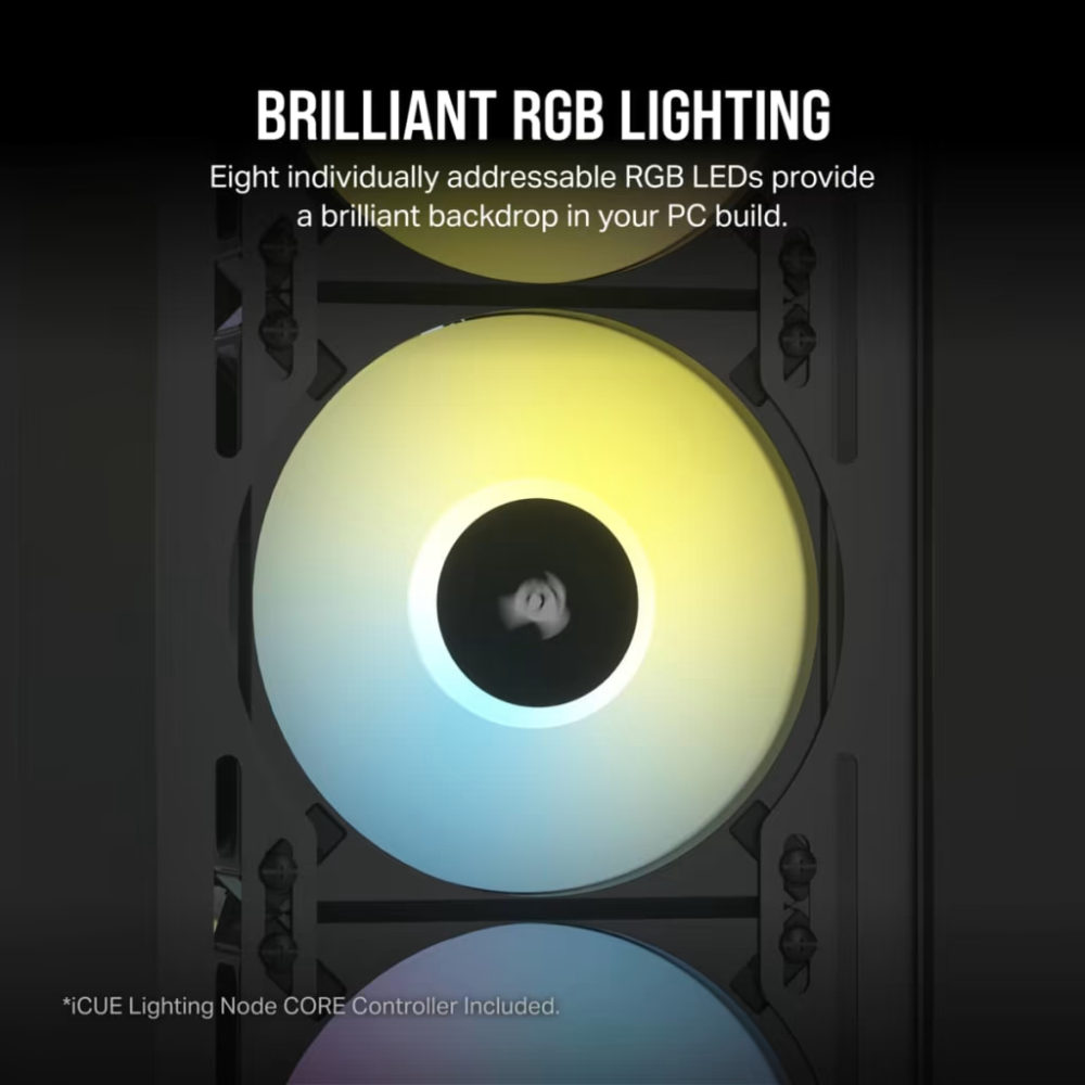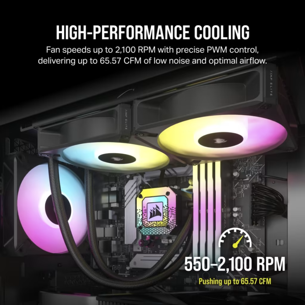 - CORSAIR AF120 RGB ELITE High-Performance 120mm PWM fans deliver PWM-controlled fan speeds from 550 RPM up to 2,100 RPM for powerful cooling, quiet operation, and brilliant RGB lighting.