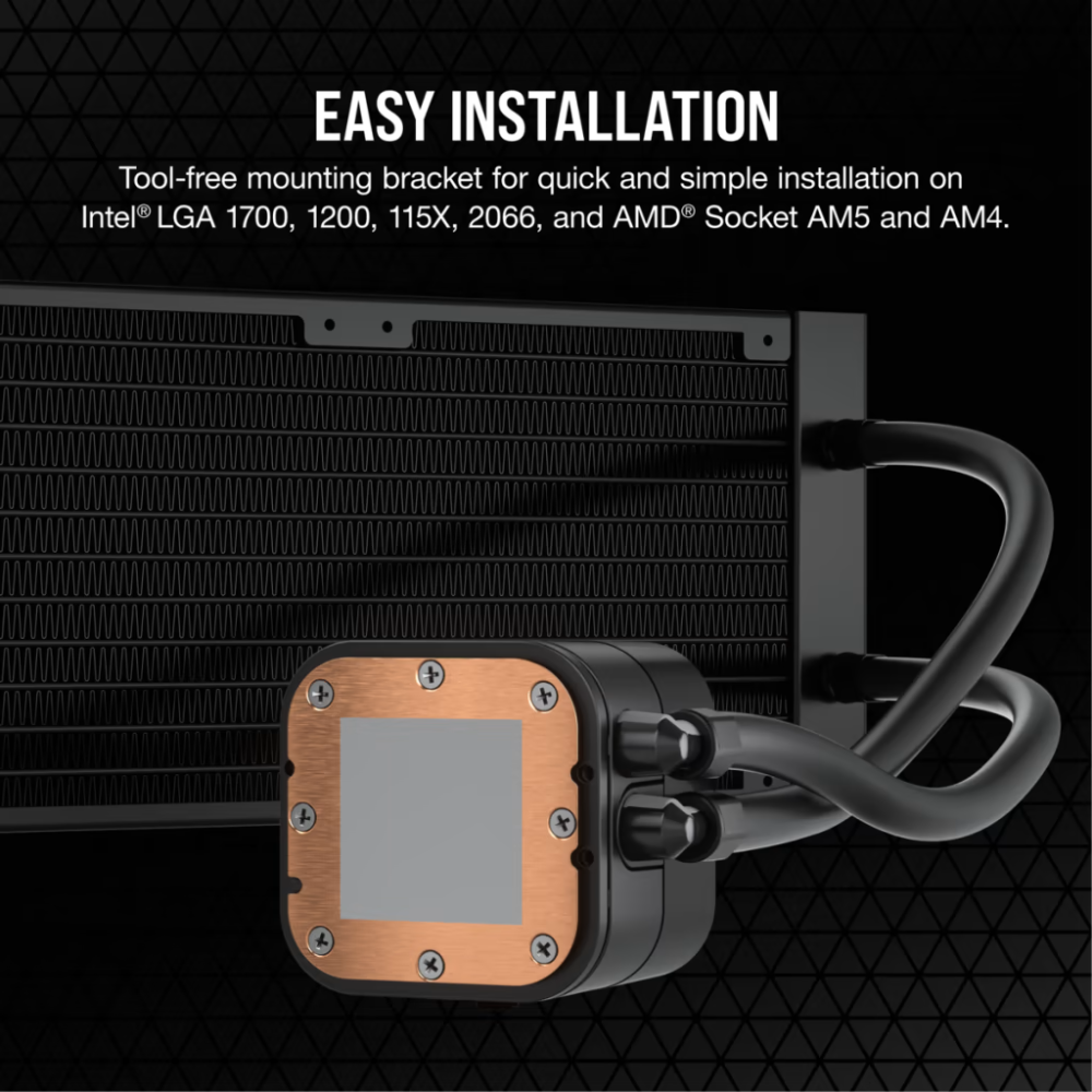 - Compatible with the latest Intel® and AMD® motherboard sockets including LGA 1700, AMD AM5, and more. Installation is quick and easy with the included modular, tool-free mounting bracket and pre-applied thermal paste.