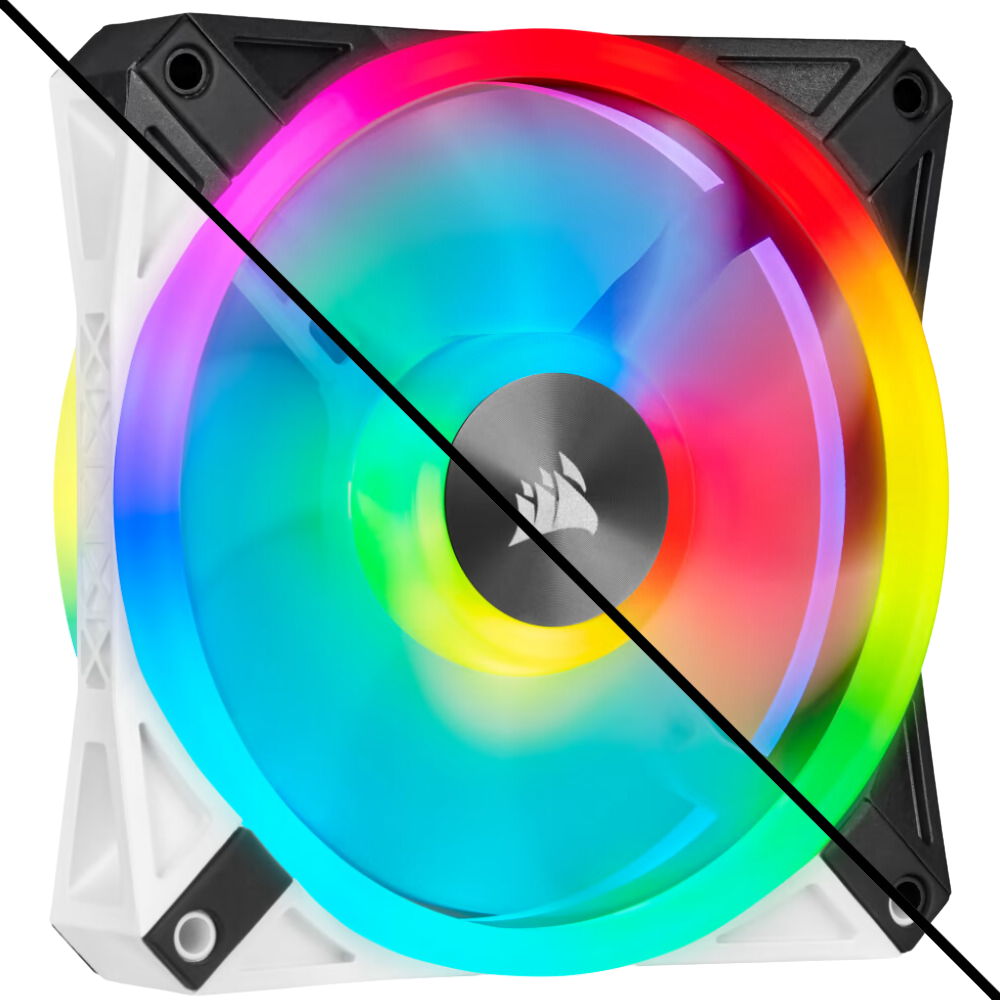 - Give your PC stunning lighting from any angle with the CORSAIR iCUE QL120 RGB PWM fan, equipped with 34 individually addressable RGB LEDs across four distinct light rings in a glossy white enclosure.
