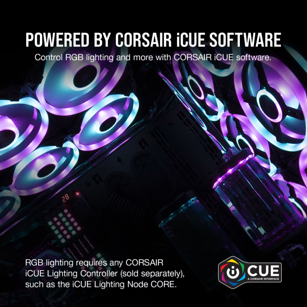 - Control RGB lighting via CORSAIR iCUE software with the incredibly compact Lighting Node CORE*, cutting down cable clutter with simple USB 2.0 and SATA connections. *included in multi-packs only.