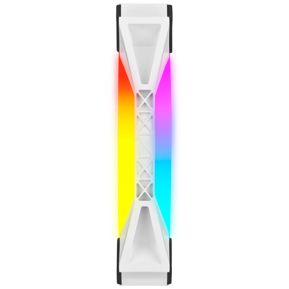 - Give your PC stunning lighting from any angle with the CORSAIR iCUE QL140 RGB PWM White fan, equipped with 34 individually addressable RGB LEDs across four distinct light rings in a glossy white enclosure.