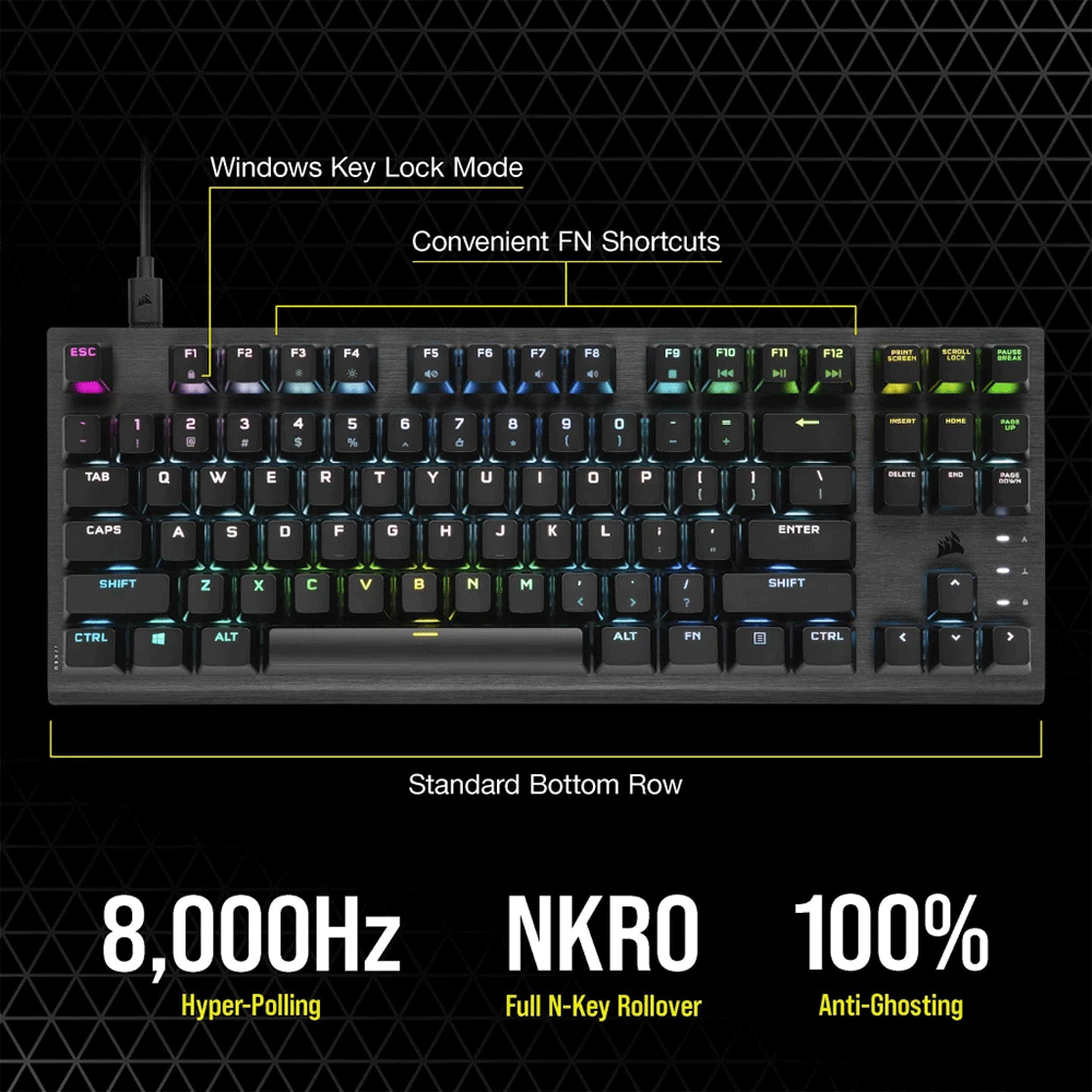- The K60 PRO TKL's compact aluminum design fits on any desktop and withstands years of gaming.