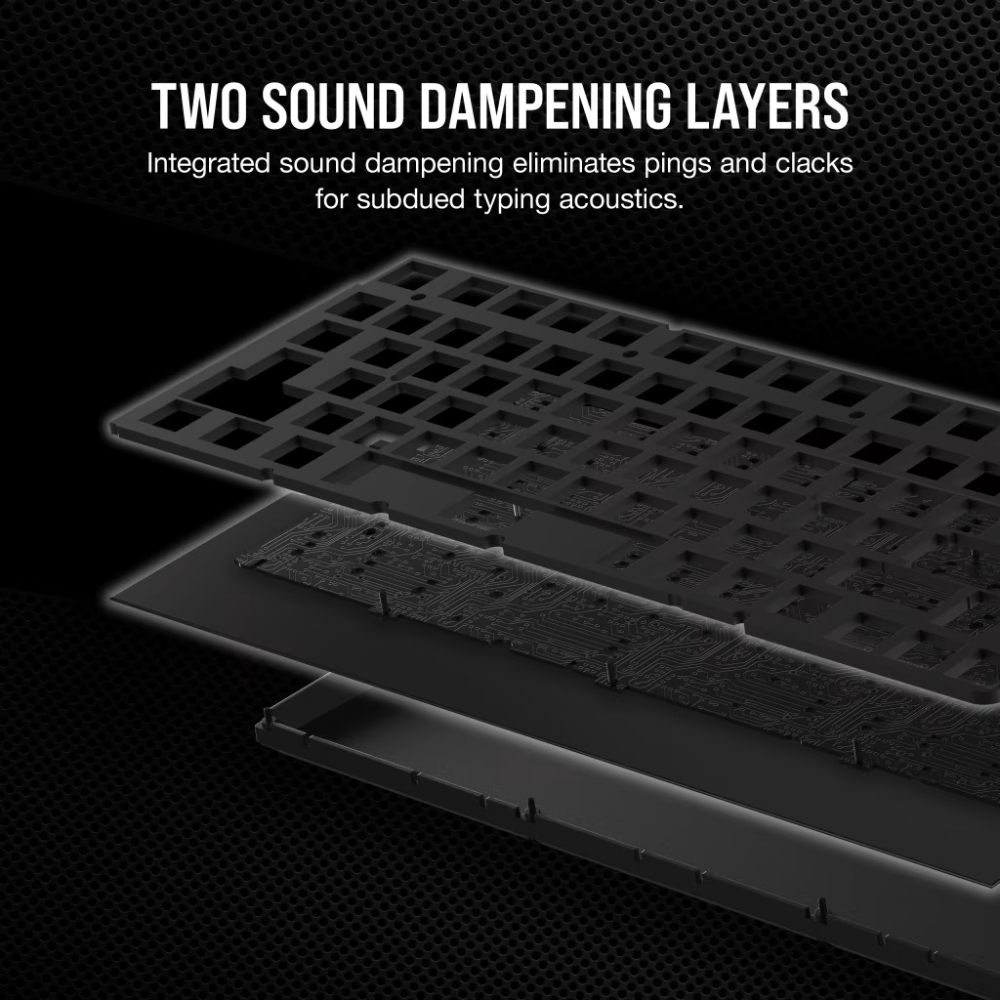 - Two layers of integrated sound dampening eliminate internal pings and echoes, for subdued typing acoustics.
