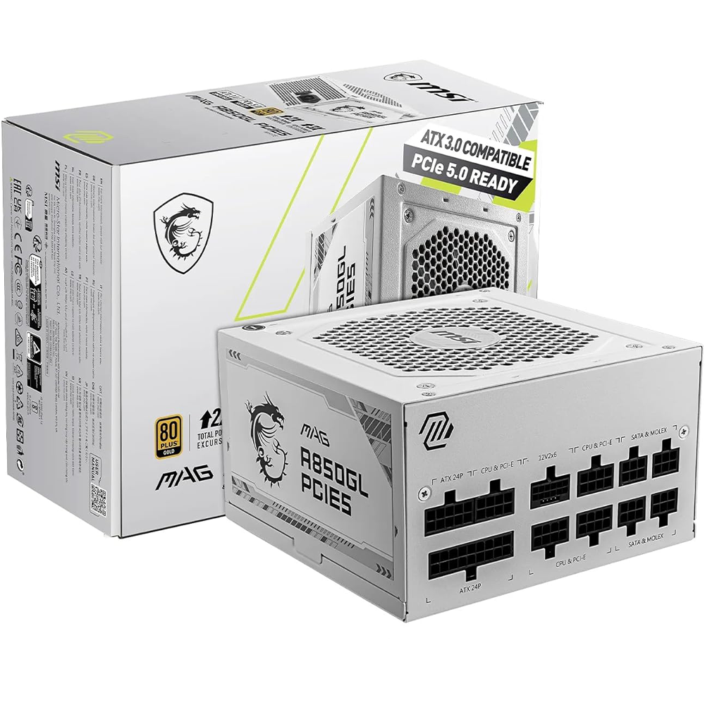 - It has an output port that is compliant with PCIe 5.1 and Intel PSDG(Power Supply Design Guide) ATX 3.1, also the MAG A850GL PCIE5 WHITE power supply can hold up to 2x total power excursion and 3x GPU power excursion.
