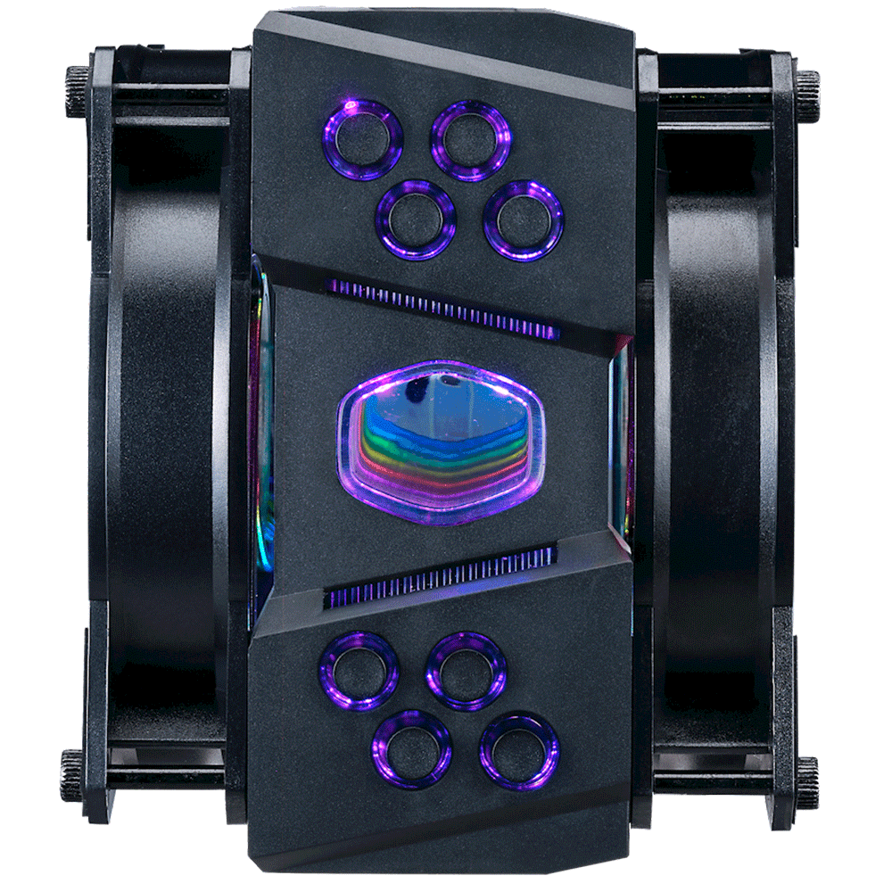 - Aluminum hexagon fin cutout that creates a unique hologram lighting that can be seen through the top of the cooler. The specialized aluminum fin design dissipates heat faster for maximum cooling efficiency.