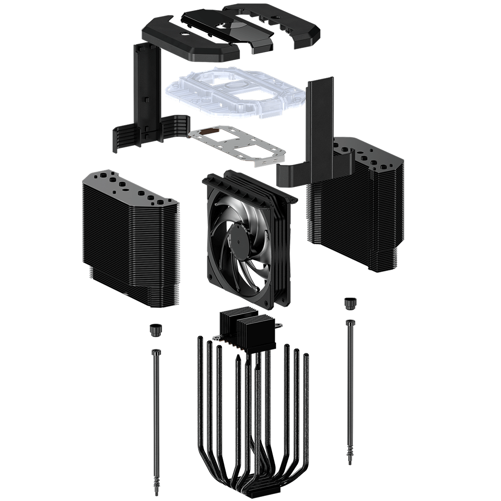 - DUAL TOWER HEATSINK : A combination of 2 sets of heatsink allows bigger and more spread out surface area. The black paint enhances radiation cooling performance