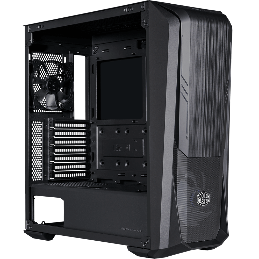 - Cooler Master’s FineMesh technology excels in providing maximum airflow, superior dust filtration, and amplifies the ARGB SickleFlow fans installed with a scattered glowing effect.