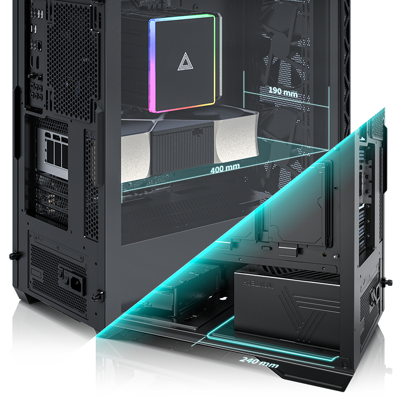 Seamless Fit for Massive GPUs and Unparalleled PSU Clearance: