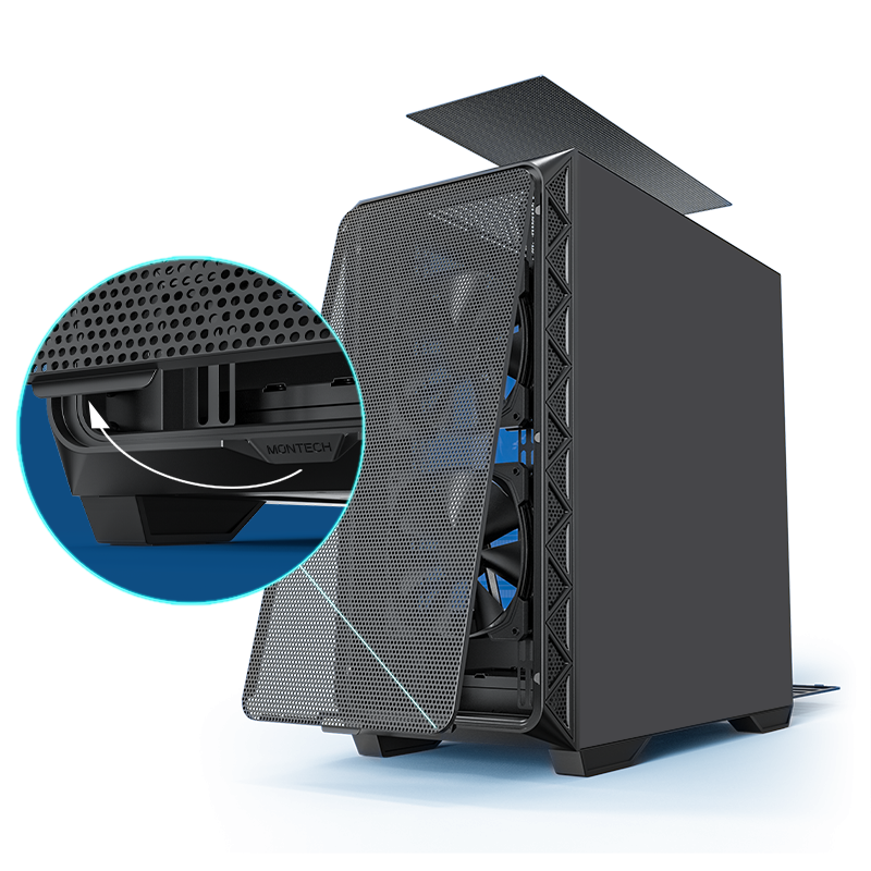 - Enjoy optimal airflow, easy cleaning with the quick-release design, and comprehensive dustproof protection with strategically placed filters.