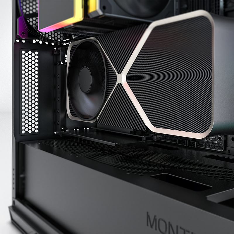 - Upgrade your gaming experience with the Montech Vertical Graphics Card Mounting Kit (sold separately). Remove all 7 PCIe slot covers for effortless installation and enjoy improved thermal performance and striking visuals by vertically mounting your graphics card. Elevate your GPU's aesthetics and performance like never before.