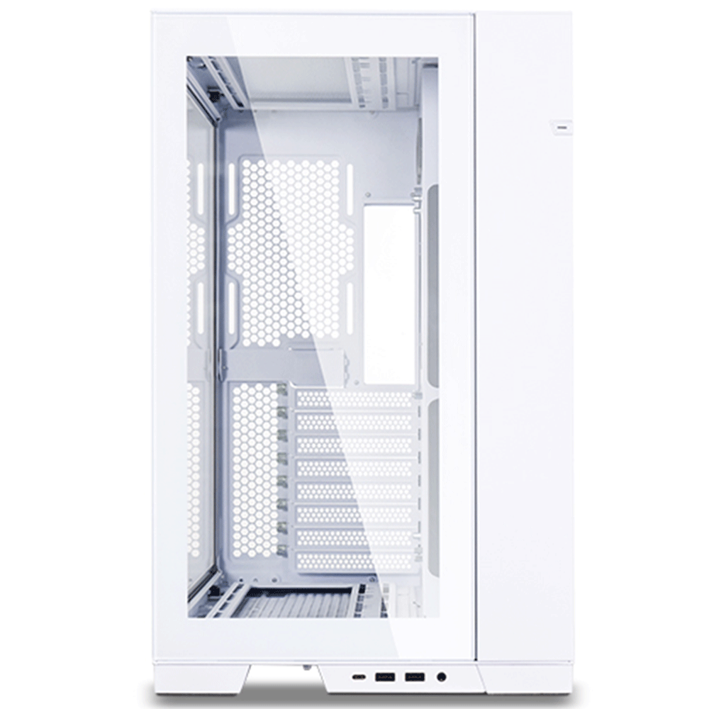 - The O11D EVO keeps the front panel as clean as possible with a multi-directional power button that can be pressed from both the front and the side of the chassis.