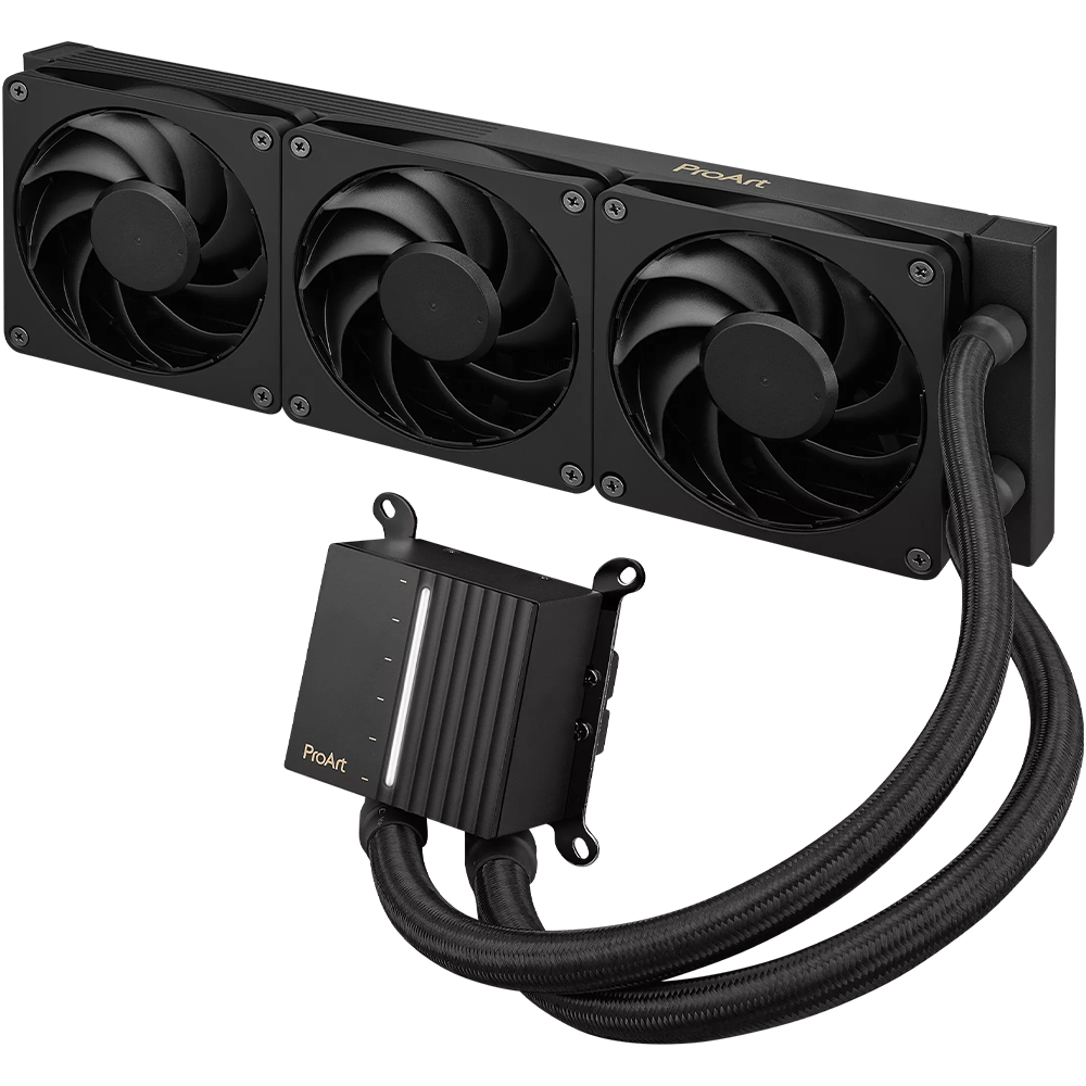 - Experience exceptional cooling performance and quiet operation. Powered by a robust three-phase motor and Alphacool Apex Stealth Metal Power fans, the ProArt LC 360 expertly integrates premium tech into an elegantly understated design. An illuminated meter on the pump cover also provides live system stats in the signature minimalist ProArt manner for real-time information at a glance. And its subtle and graceful aesthetics add a touch of refinement to your setup. Cool, quiet and classy—the perfect trifecta for any and all content creators.
