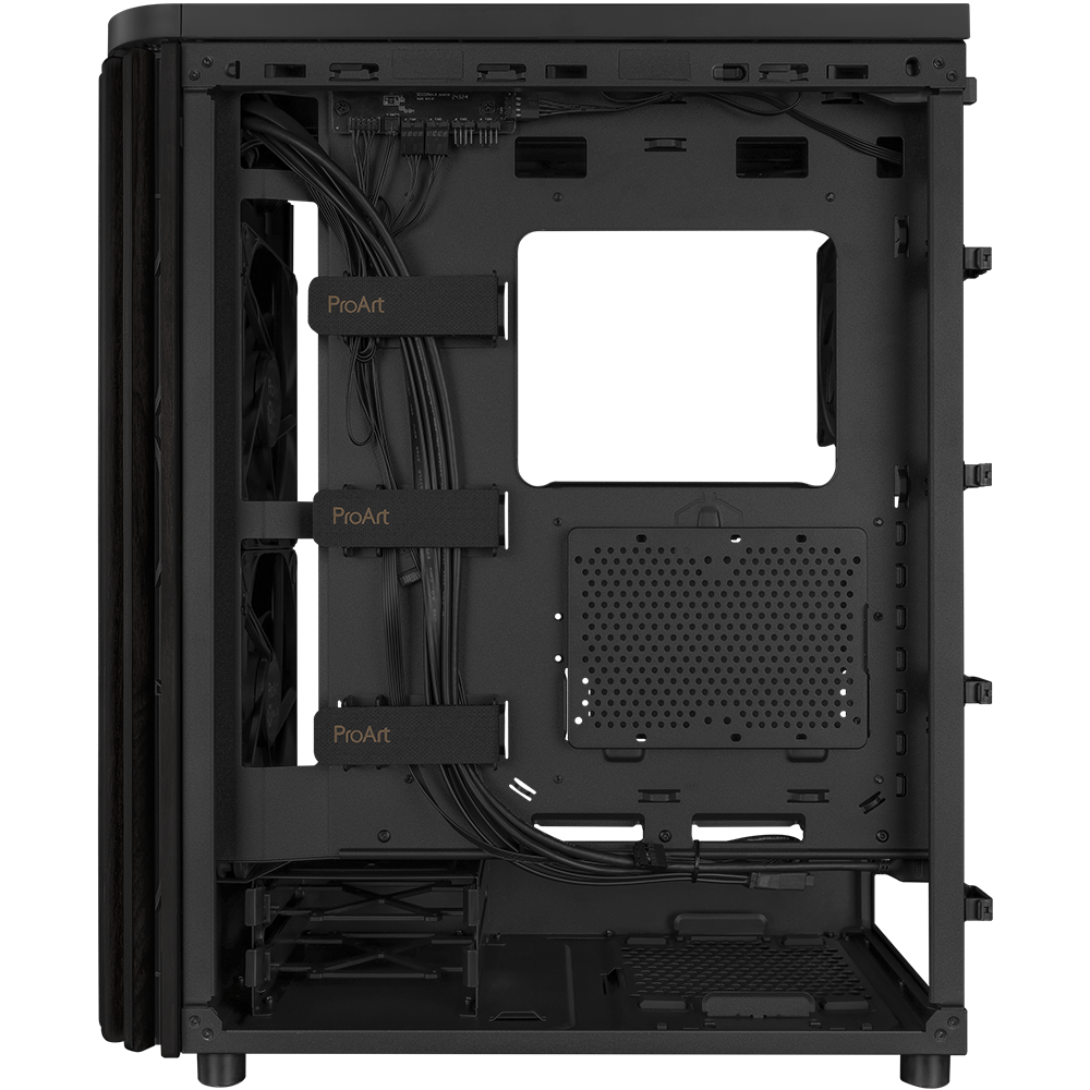 - The ProArt PA401 Wood Edition showcases a wooden front panel that creates a distinctive, elegant style while promoting sustainability. The wood used is certified by the Forest Stewardship Council (FSC), and is finished using a six-stage process. The case also boasts optimal built-in cooling, with two 160mm front fans and one 120mm rear fan, along with an integrated fan hub, enabling optimal airflow.
