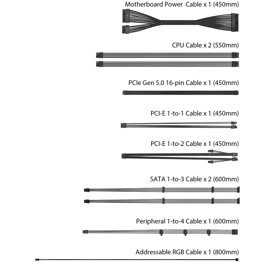 - To reduce noise output, the PWM-controlled fan shuts off entirely when the PSU load is 40% or below.