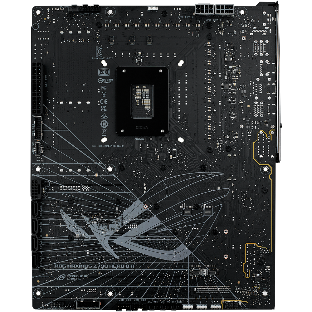 - ROG Maximus Z790 Hero BTF is the first ROG motherboard with a hidden-connector design and graphics card high-power slot that delivers up to 600 watts of power for BTF graphics cards through the motherboard, providing an unprecedented level of cable management to PC DIY enthusiasts. It also boasts robust cooling, WiFi 7 and ample PCIe® 5.0 slots for unmatched performance, plus full compatibility with 14th Gen Intel® Core processors.
