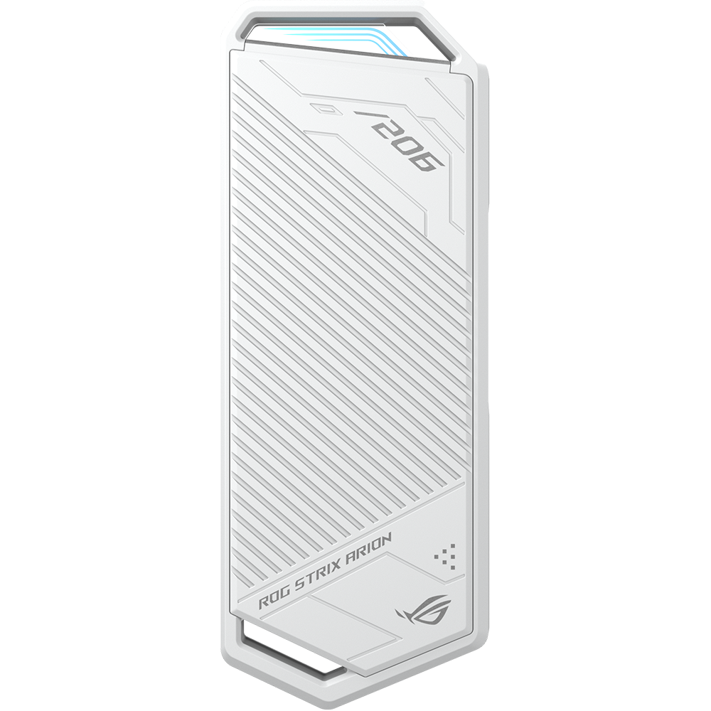 - ROG Strix Arion is an SSD enclosure that fits an M.2 PCIe NVM Express® SSD with a 2230/2242/2260/2280 form factor and features USB-C™ 3.2 Gen 2x1 connectivity to deliver data transfer speeds of up to 10 Gbps. Its sleek aluminum alloy case features thermal pads for excellent heat dissipation, exclusive ASUS Aura Sync lighting effects, and a protective holder with an R-hook that altogether make ROG Strix Arion a high-performance, mobile storage solution.