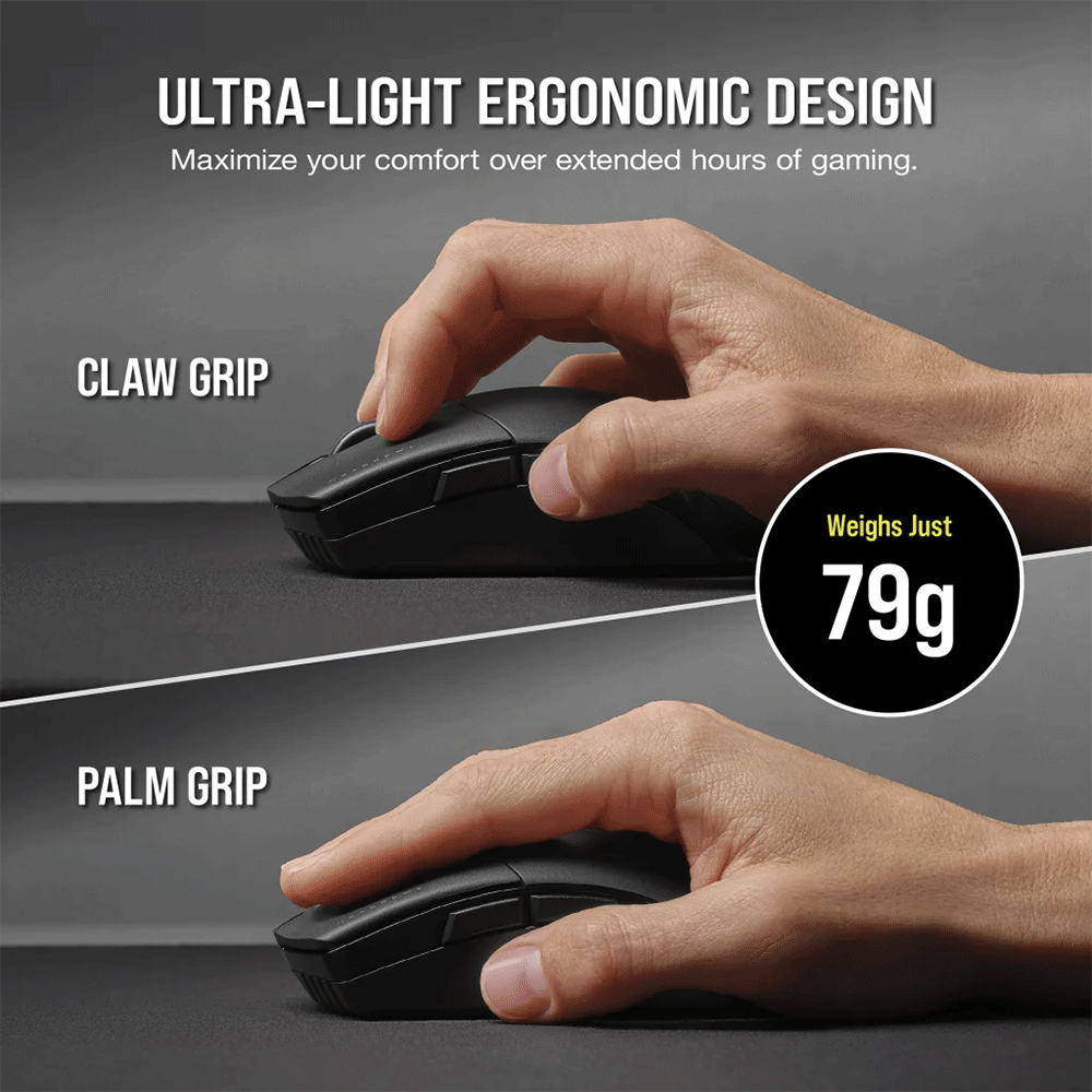 - Powerful CORSAIR iCUE software enables quick DPI adjustments, with custom macros and button remaps, and full-system lighting synchronization across the entire iCUE ecosystem.