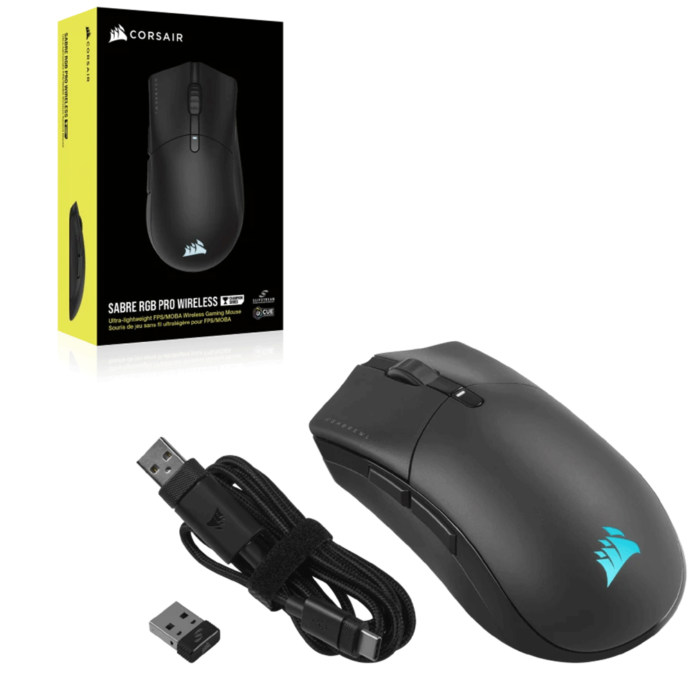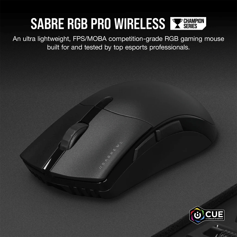 - The CORSAIR SABRE RGB PRO WIRELESS Gaming Mouse is designed for and tested by top esports professionals,weighing an ultra-light 79g and equipped with SLIPSTREAM WIRELESS technology for lightning-fast responsiveness.
