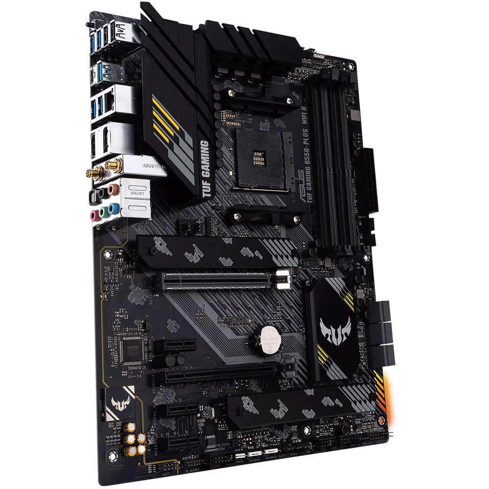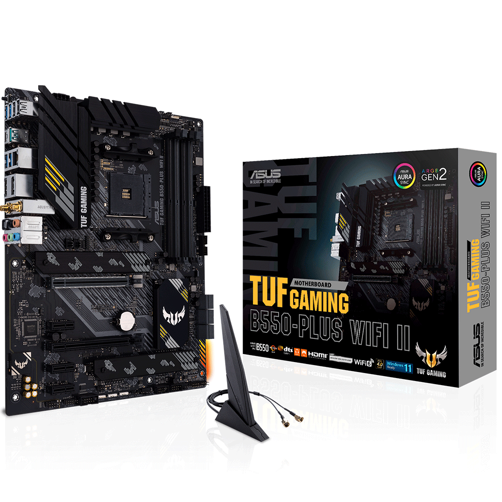 - AMD B550 (Ryzen AM4) ATX gaming motherboard with PCIe 4.0, dual M.2, 10 DrMOS power stages, Wi-Fi 6, 2.5 Gb Ethernet, HDMI, DisplayPort, SATA 6 Gbps, USB 3.2 Gen 2 Type-A and Type-C, Thunderbolt™ 3 header, and Aura Sync RGB lighting support